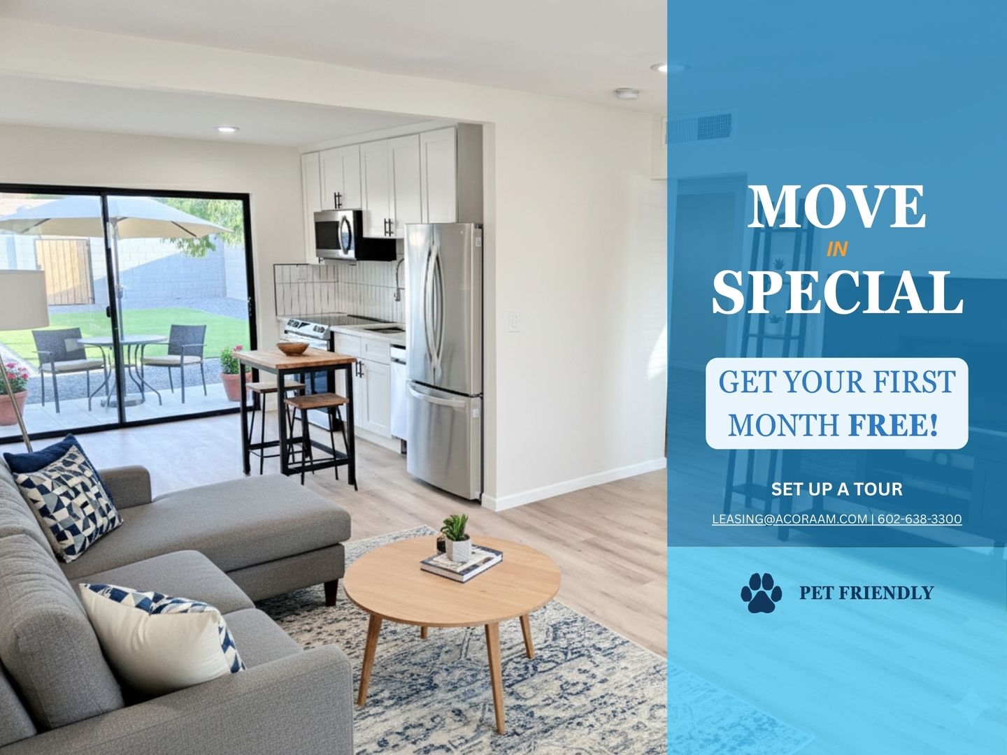 MOVE IN SPECIAL! 1ST MONTH FREE WHEN SIGNING A 13 MONTH LEASE OR AN 18 MONTH LEASE!