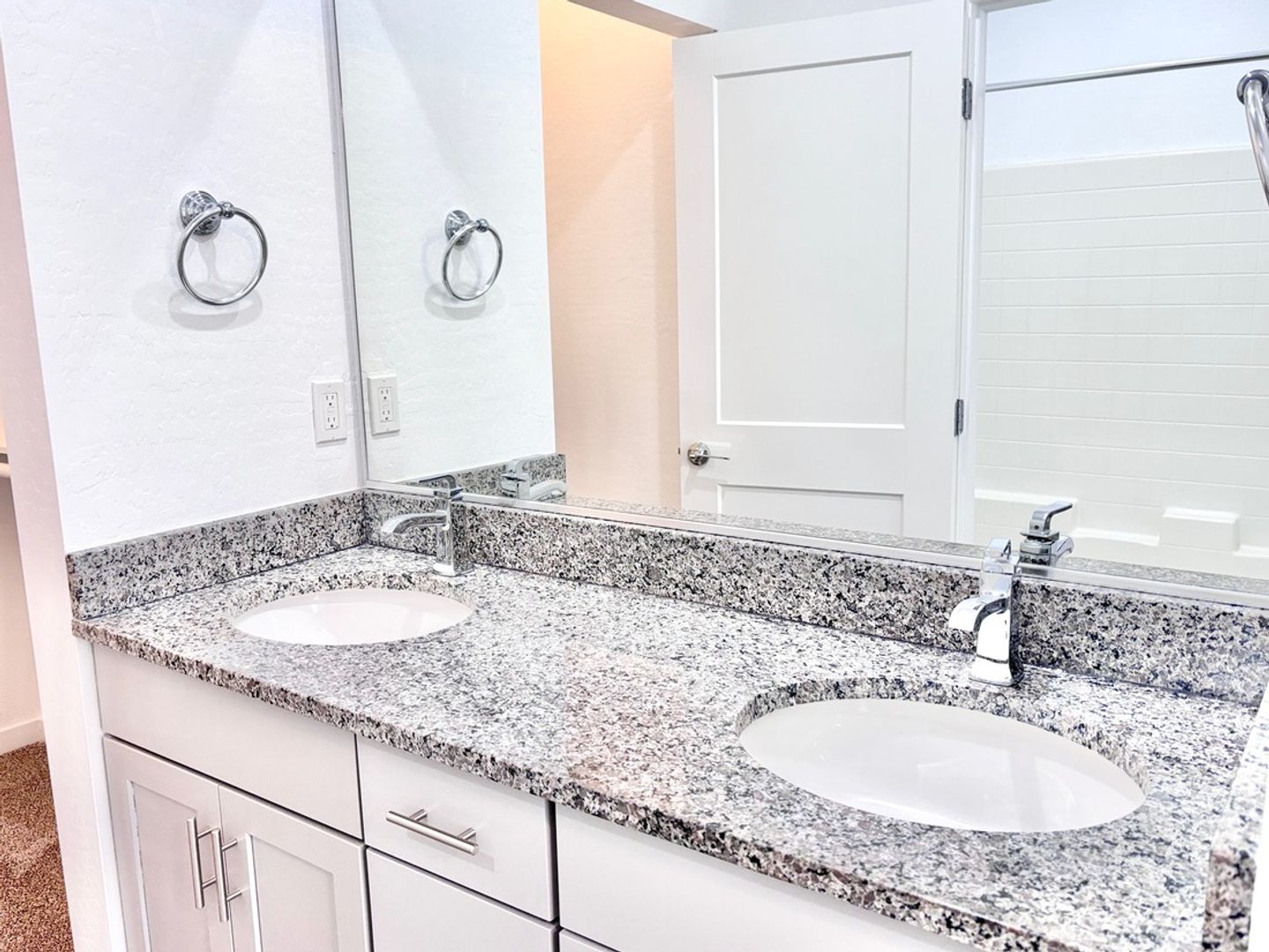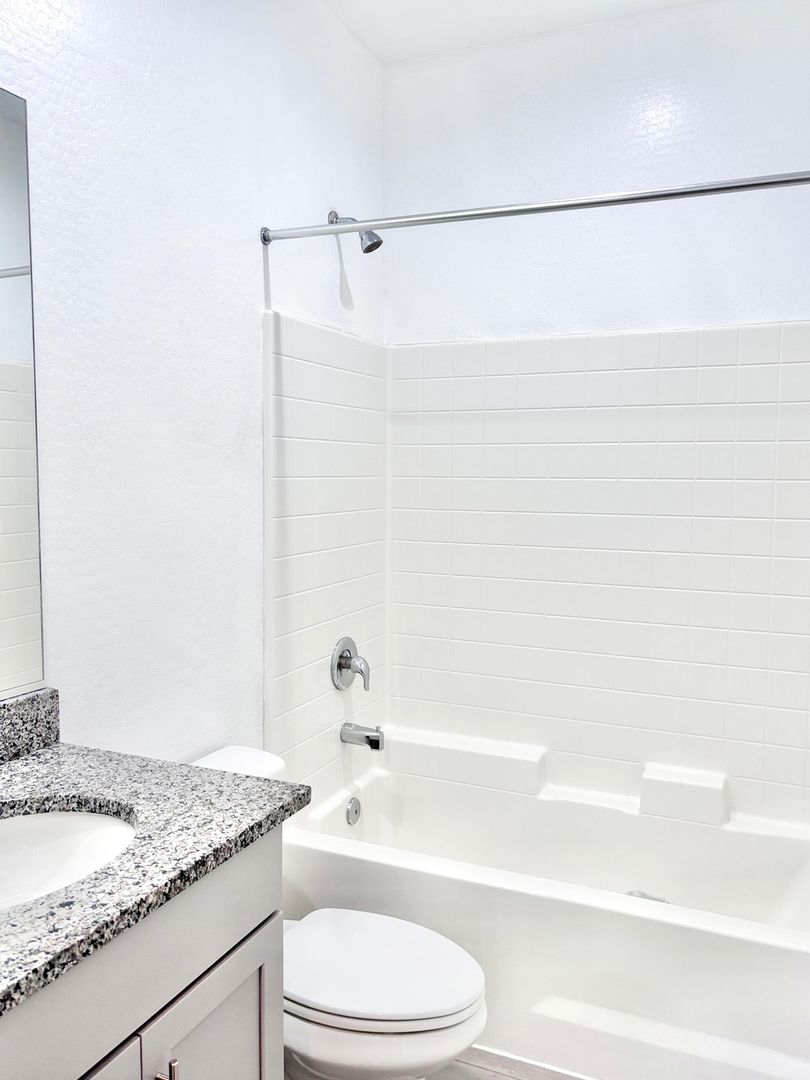 -Full-size bathtubs; granite vanity tops with under-mount sinks