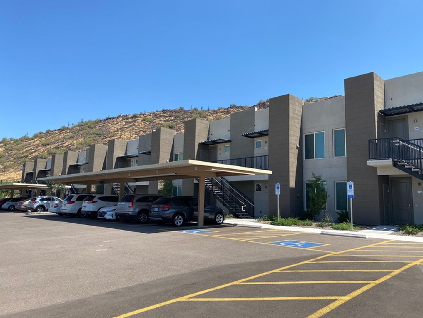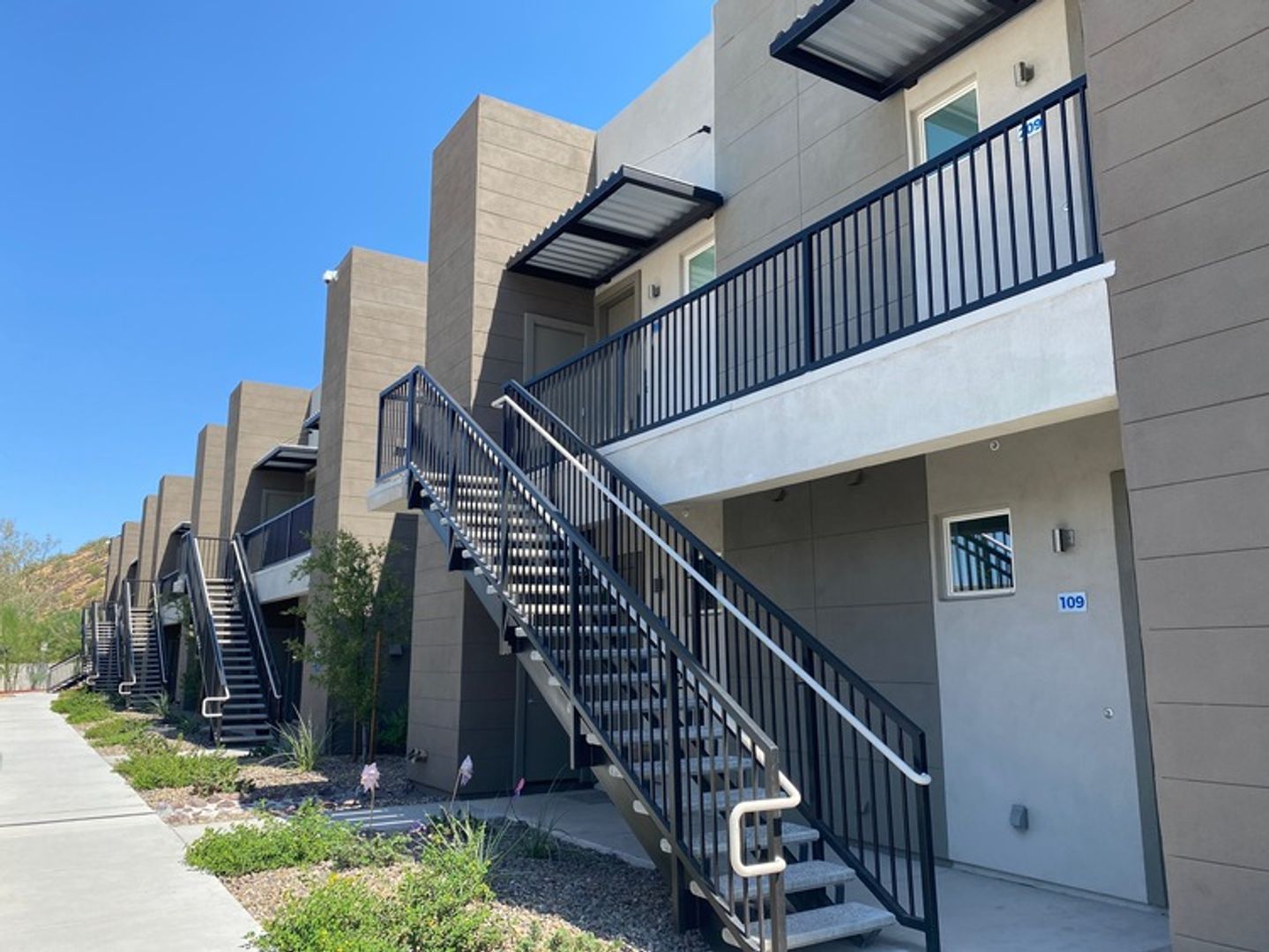 -Back patio facing Moon Mountain (first-floor residences)