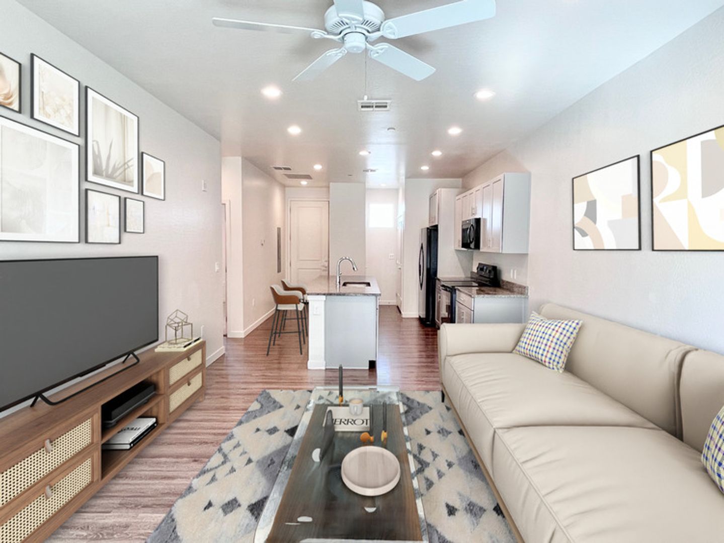 -Plank laminate flooring & neutral color palette