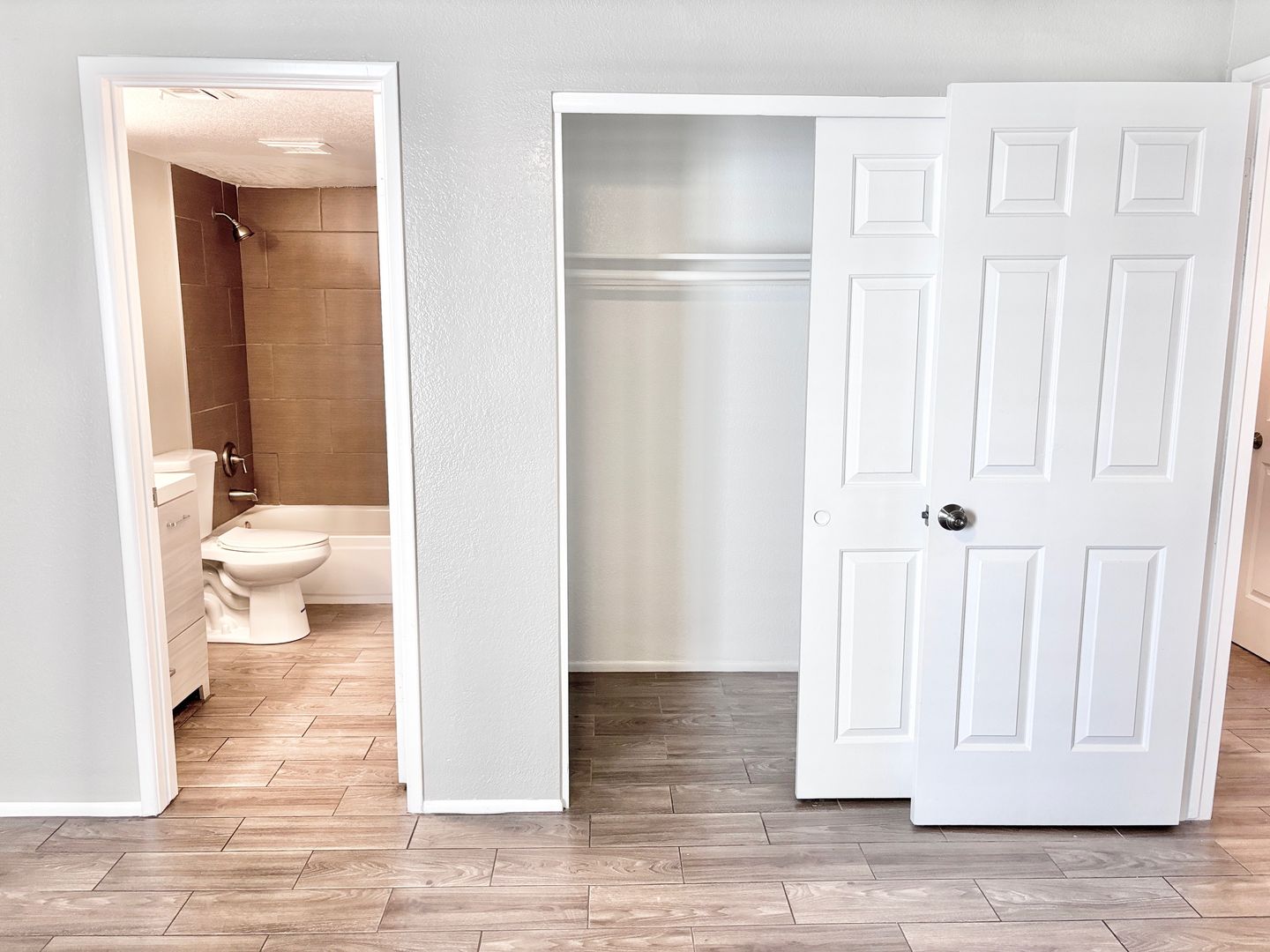 -Porcelain wood‑look tile flooring