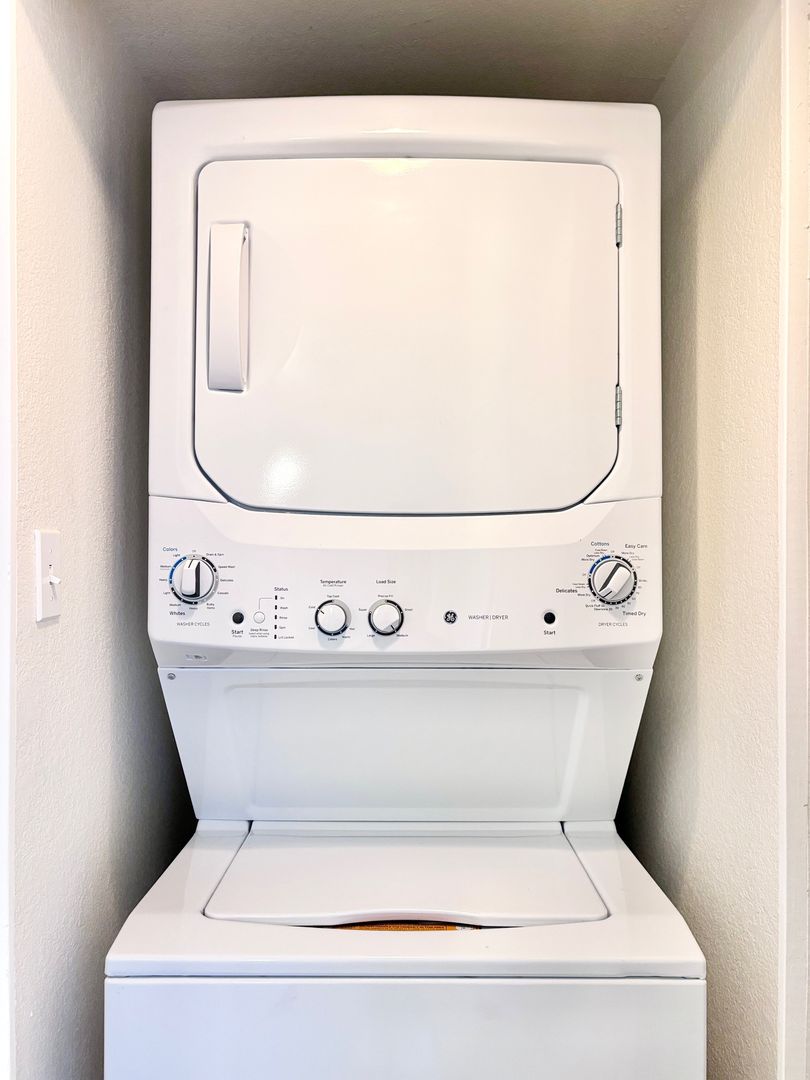 -Full‑size stackable front‑loading washer & dryer