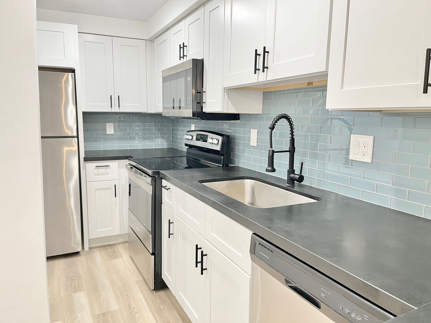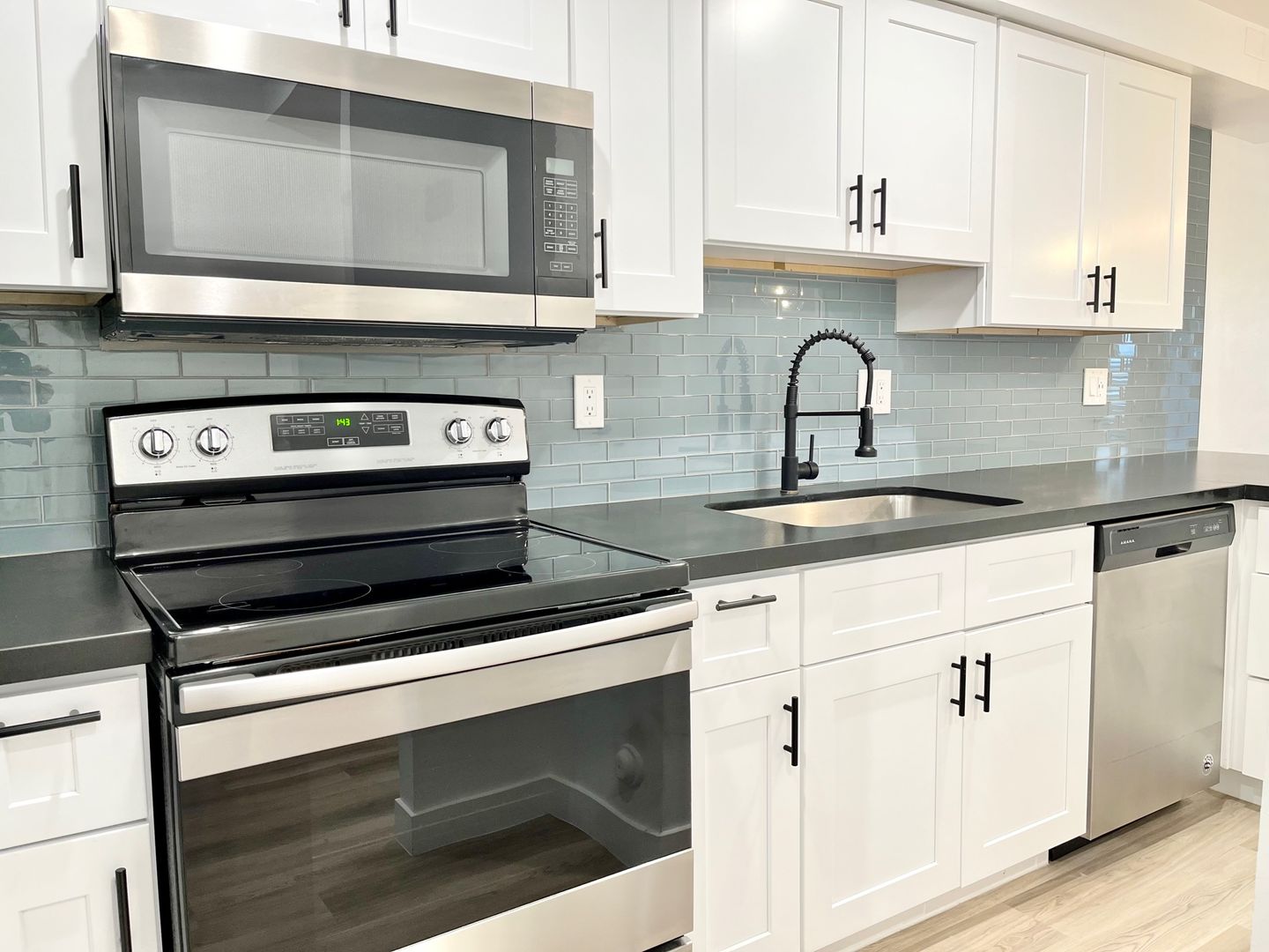 -Quartz countertops & stainless steel appliances