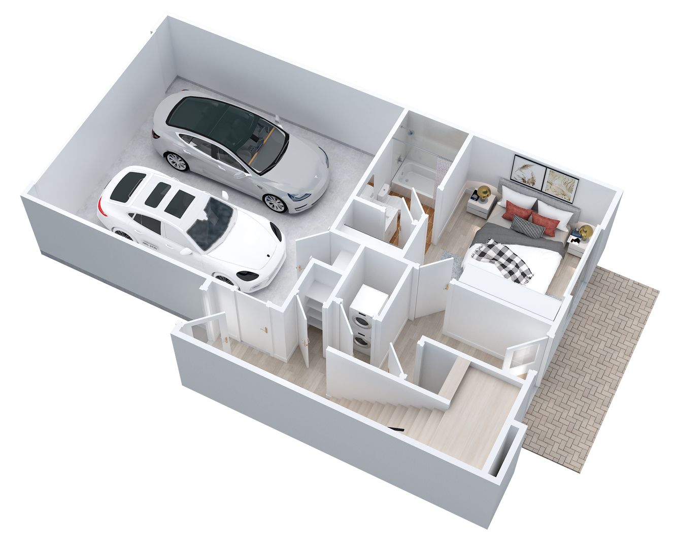 -Attached two-car garages