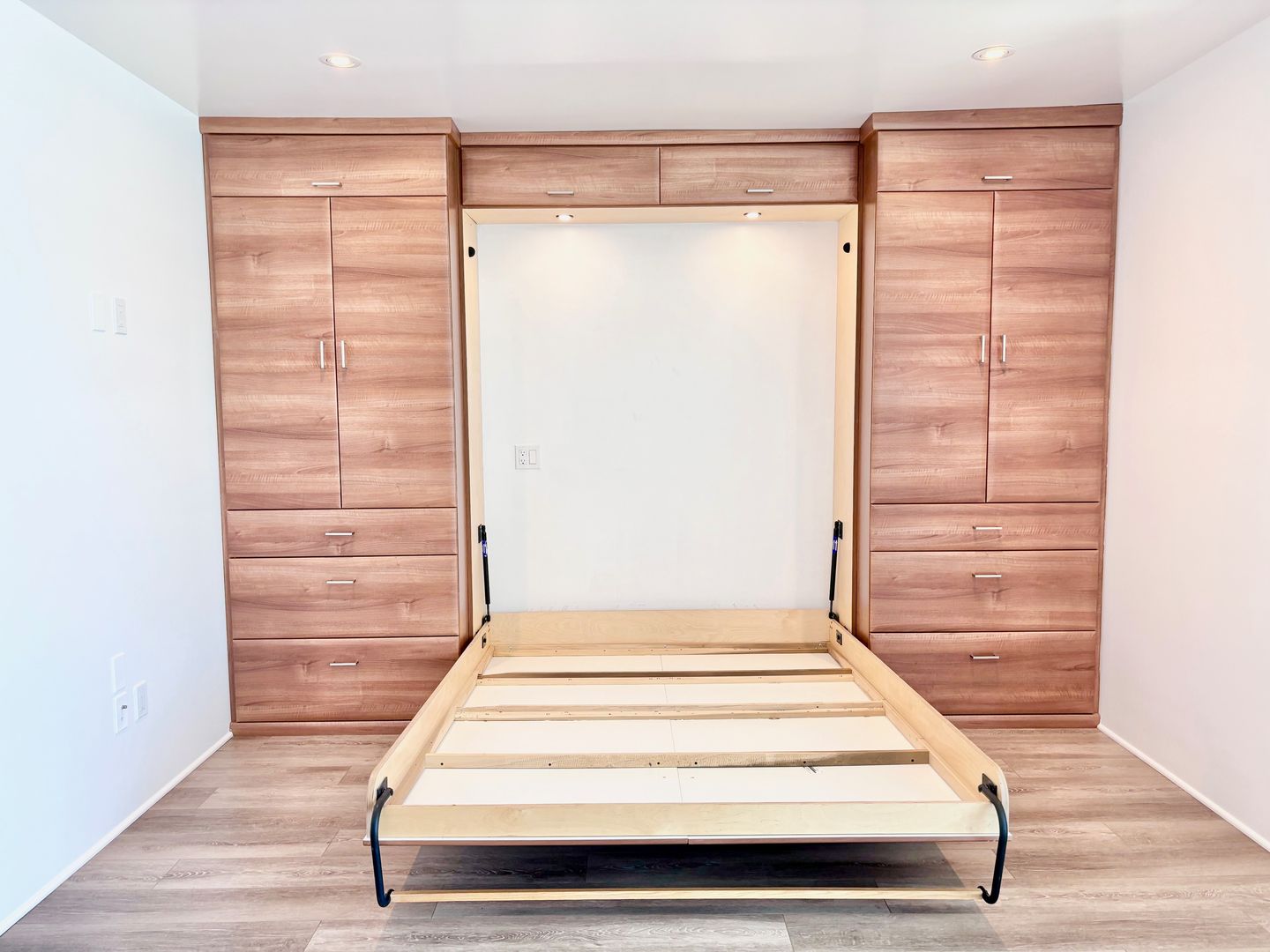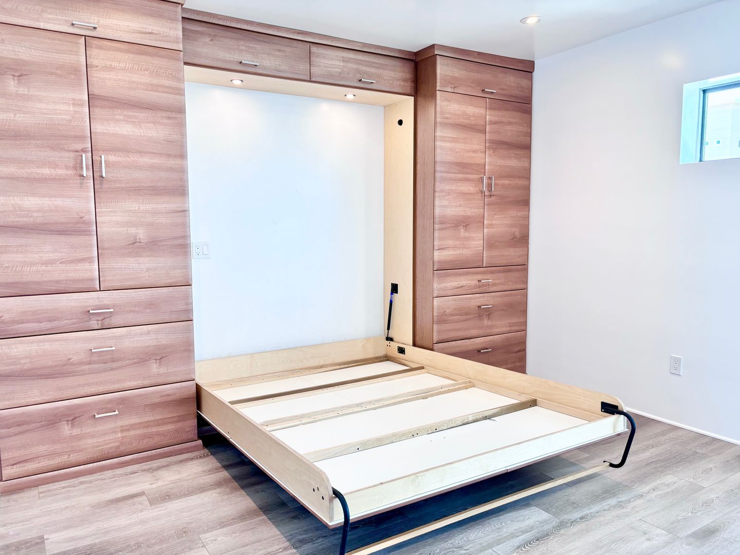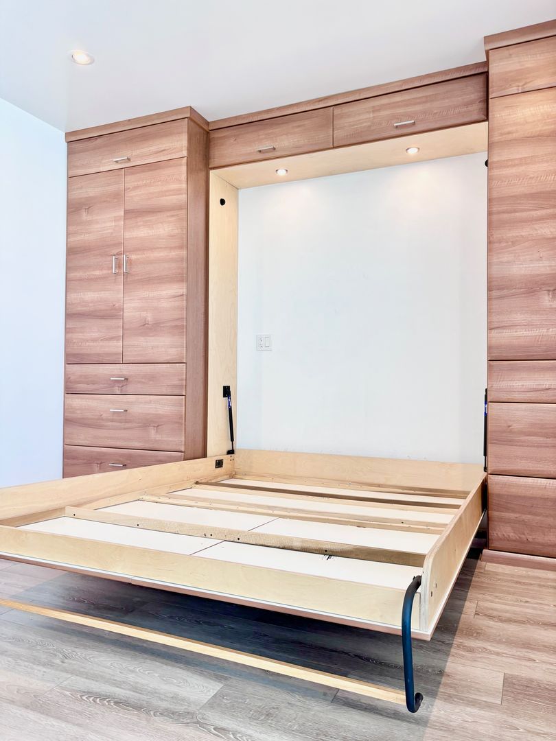 -Murphy bed/hideaway bed (fits a full or queen mattress – just bring your own!)