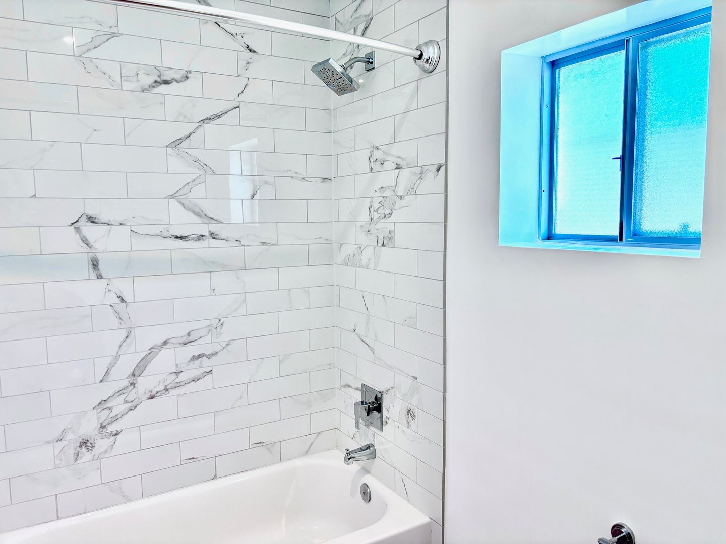 -Subway tile shower backsplash