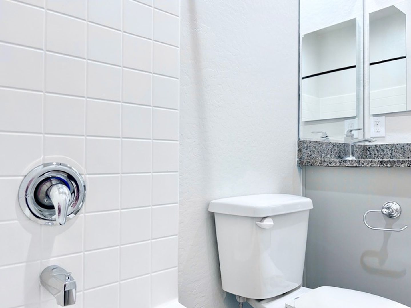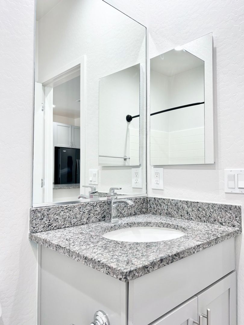 -Full-size bathtubs; granite vanity tops with under-mount sinks