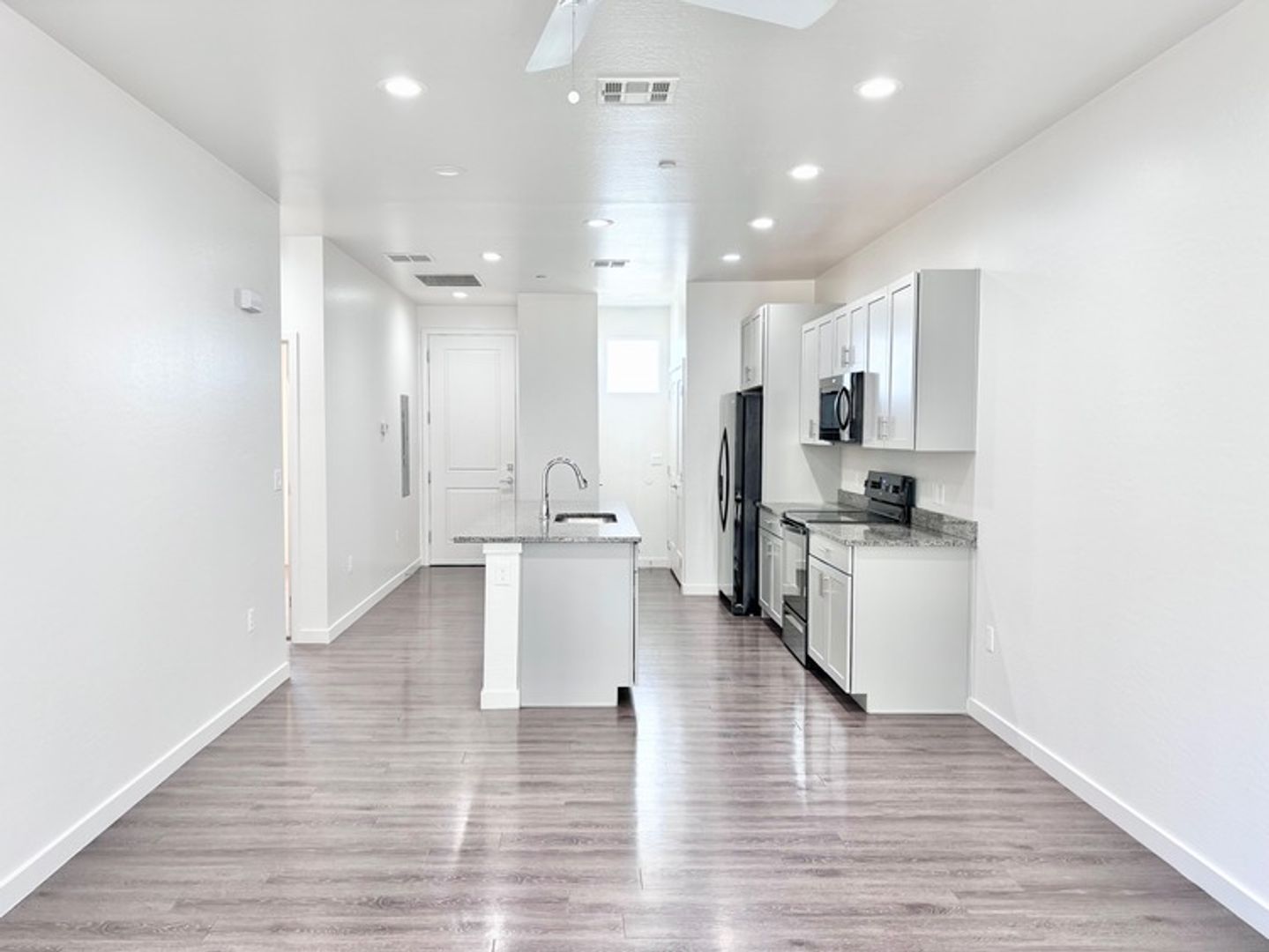 -Plank laminate flooring & neutral color palette