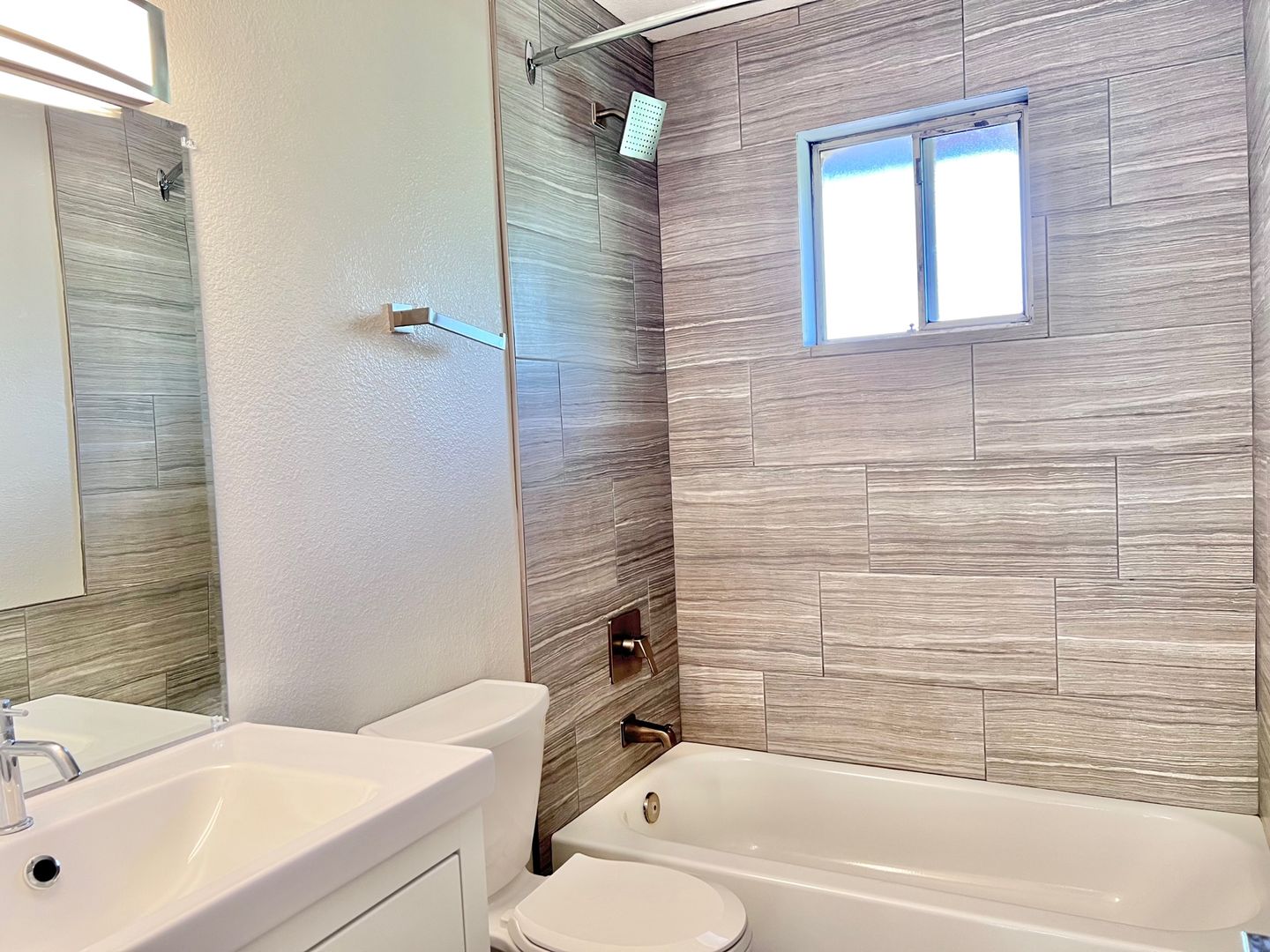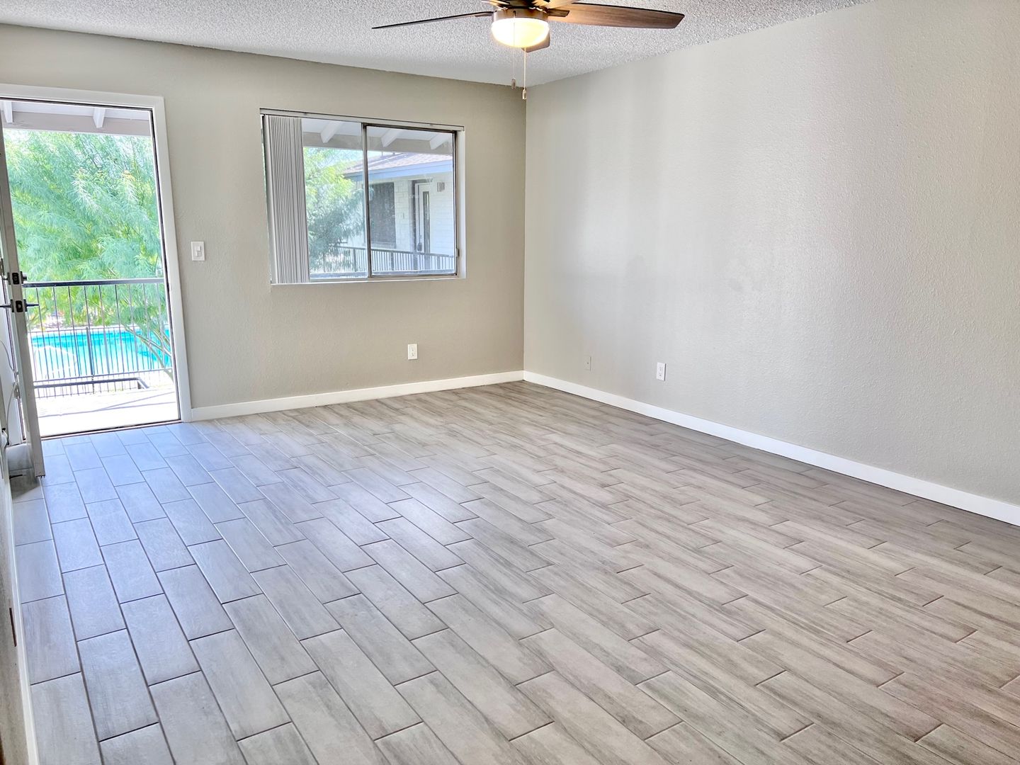 • Wood-look ceramic tile flooring