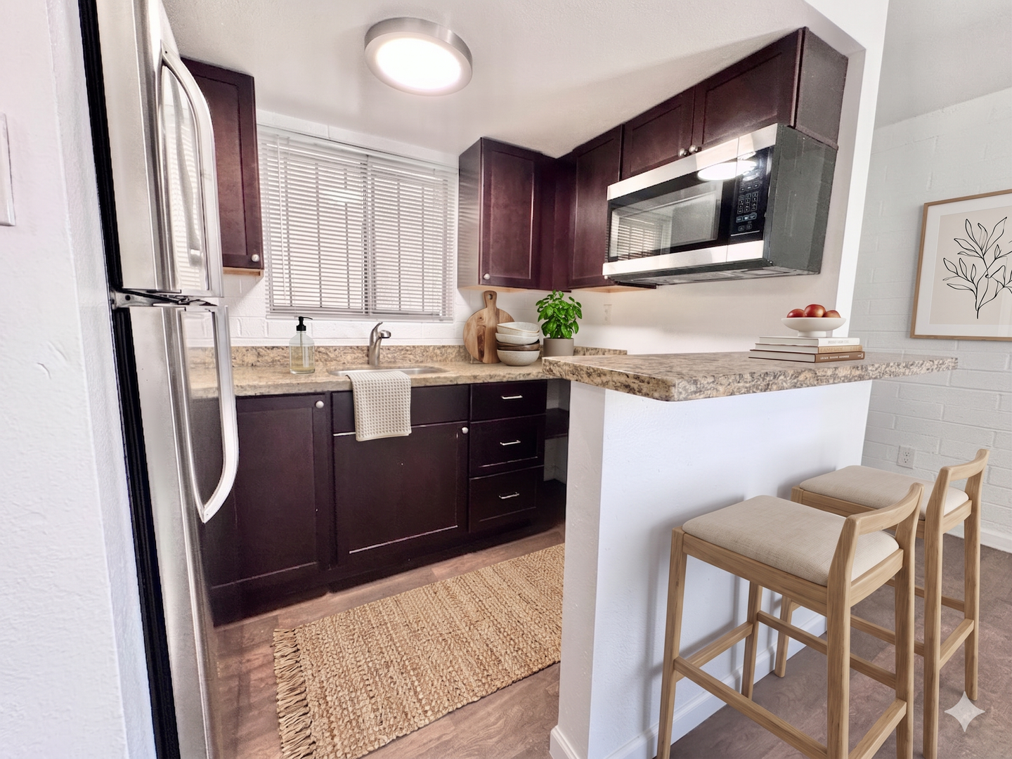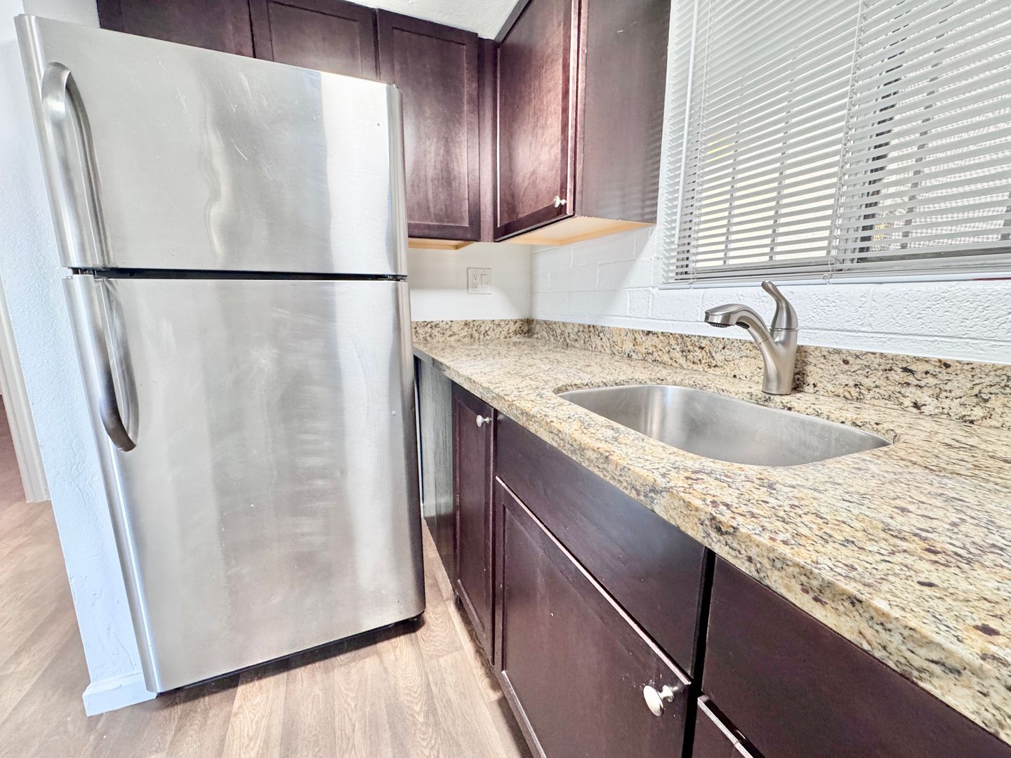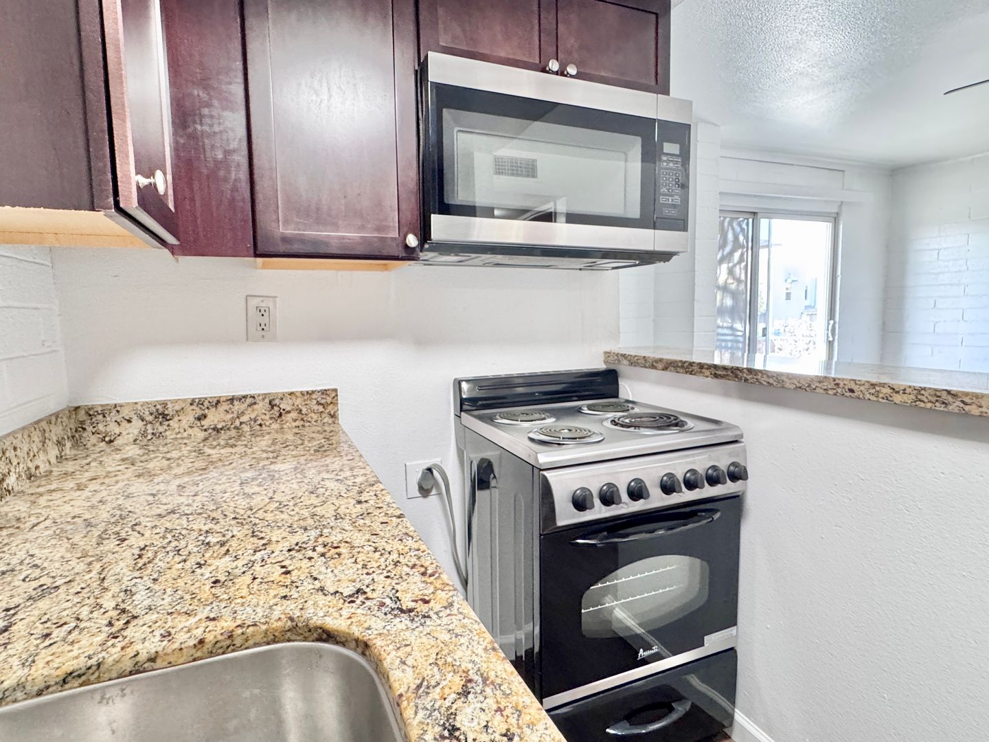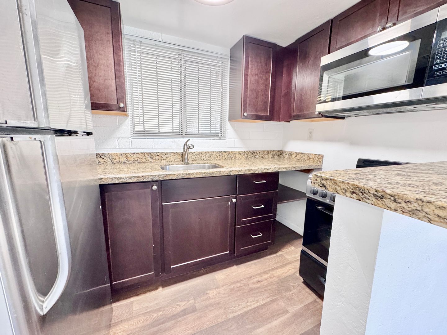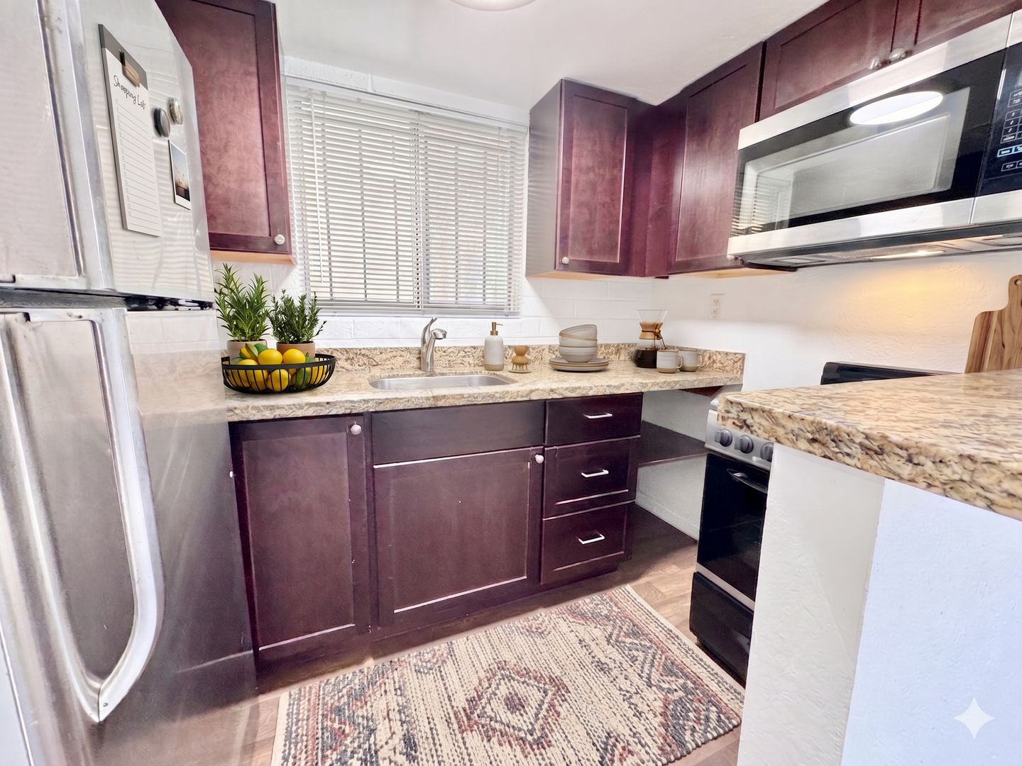 -Sleek stainless steel appliances