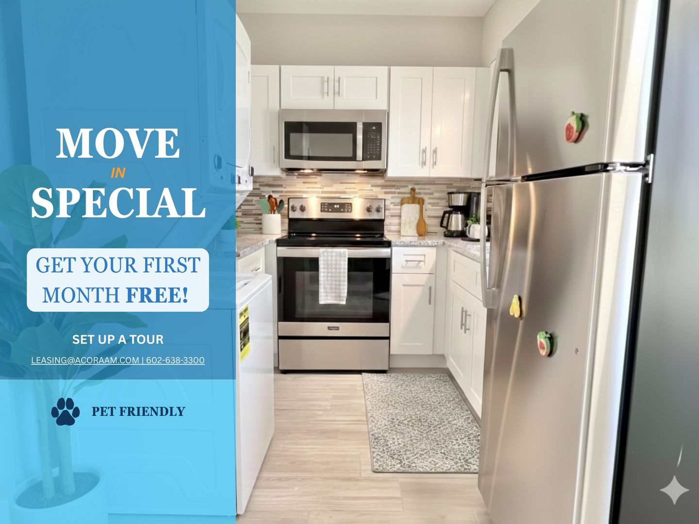 MOVE IN SPECIAL! 1ST MONTH FREE WHEN SIGNING A 13 MONTH LEASE OR AN 18 MONTH LEASE!