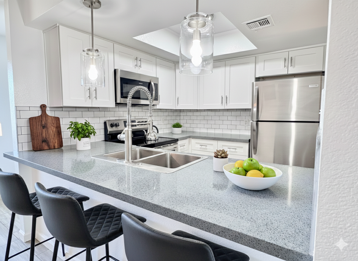 -Newly updated cabinets & stainless steel appliances