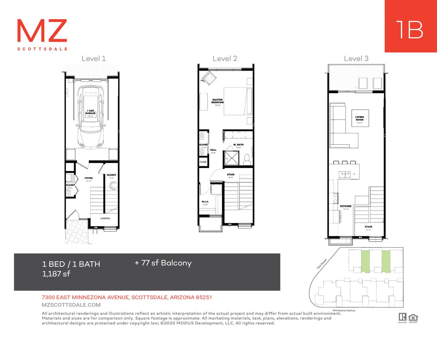 MZ Scottsdale – 1 Bed 1 Bath Townhome with In‑Unit Washer & Dryer, 1‑Car Garage