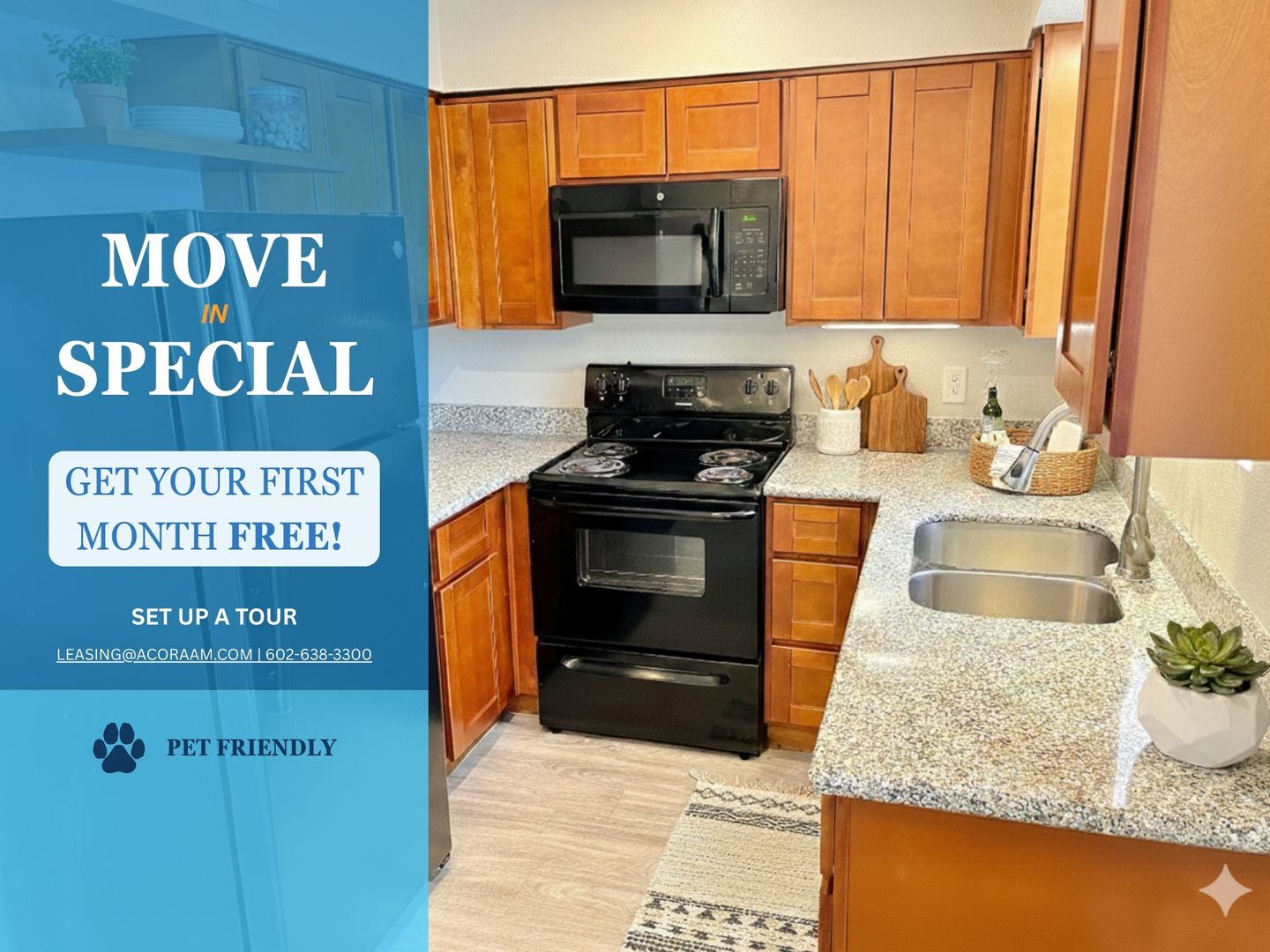 MOVE IN SPECIAL! 1ST MONTH FREE WHEN SIGNING A 13 MONTH LEASE OR AN 18 MONTH LEASE!
