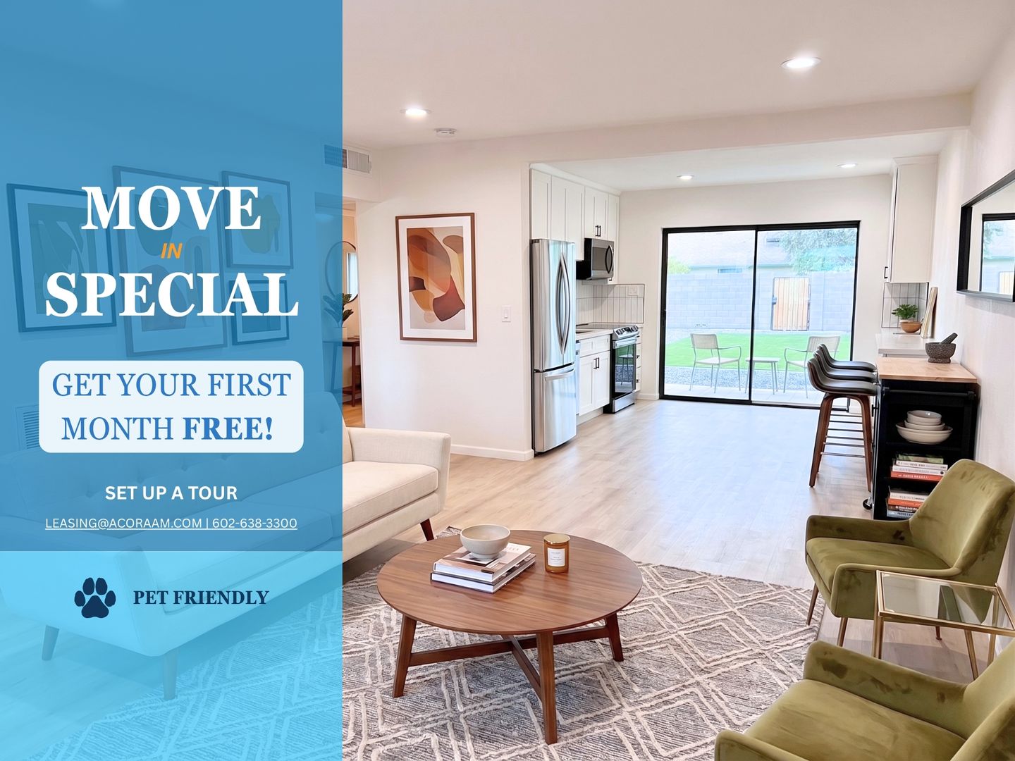 MOVE IN SPECIAL! 1ST MONTH FREE WHEN SIGNING A 13 MONTH LEASE OR AN 18 MONTH LEASE!