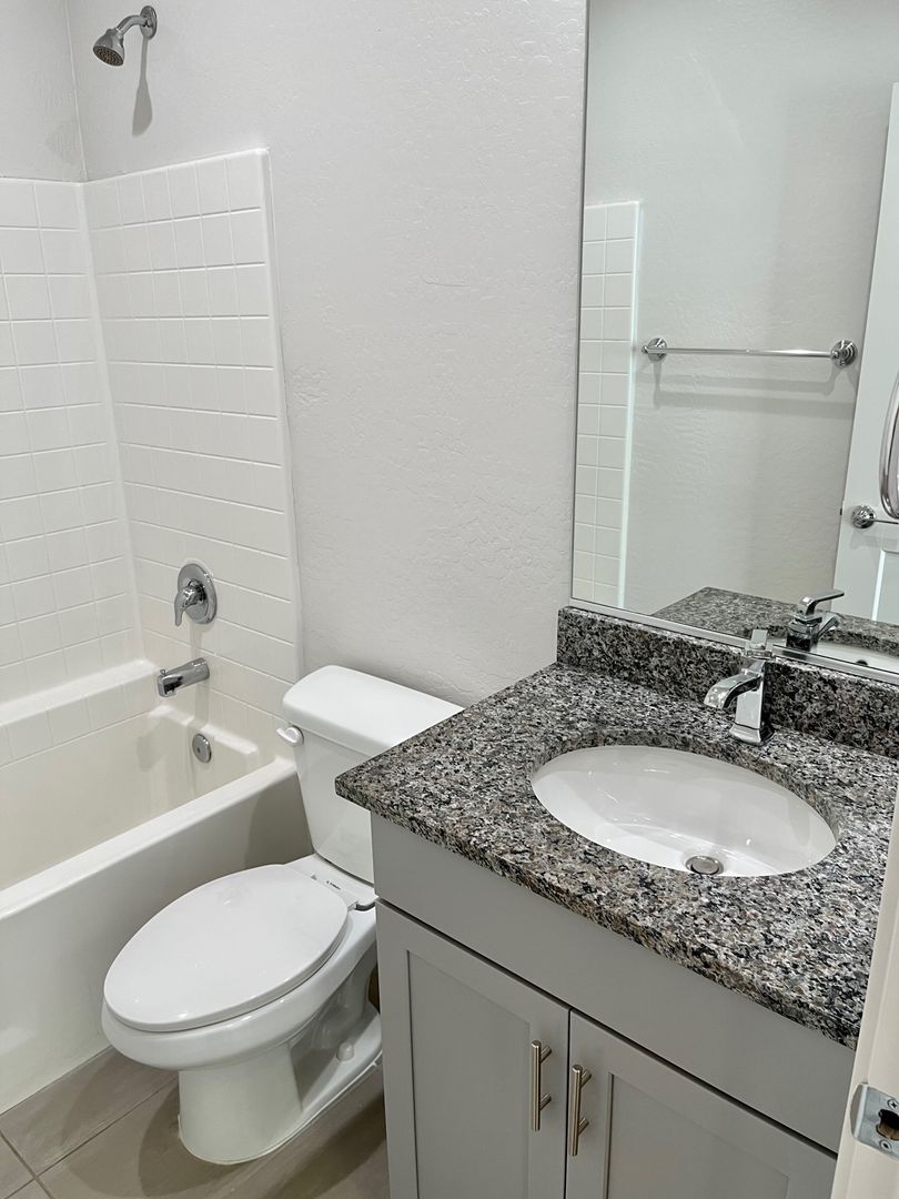 -Full-size bathtubs; granite vanity tops with under-mount sinks