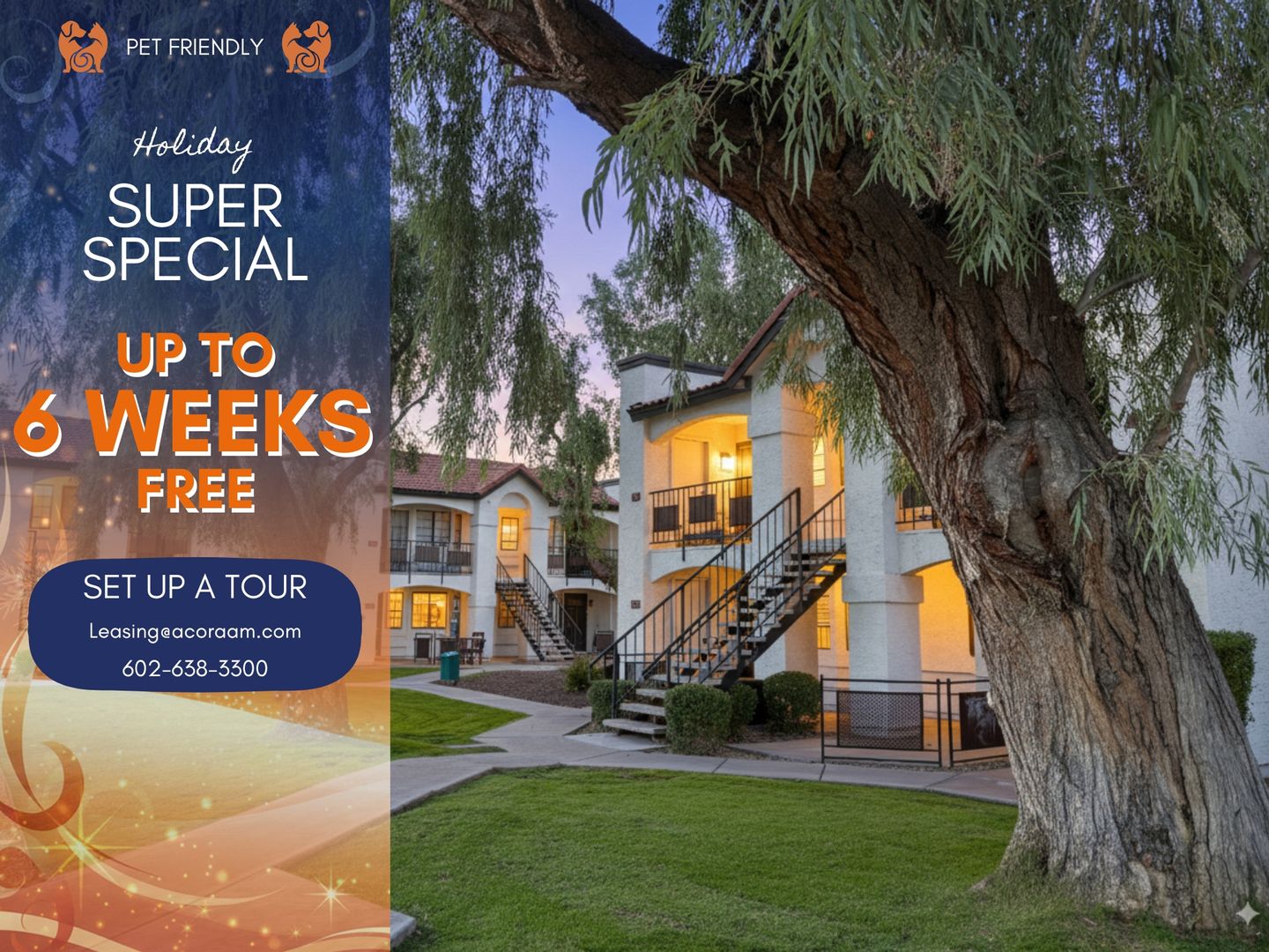 *HOLIDAY MOVE-IN SPECIAL! FIRST MONTH FREE WHEN SIGNING A 13-MONTH LEASE OR 6 WEEKS FREE WITH AN 18-MONTH LEASE!*