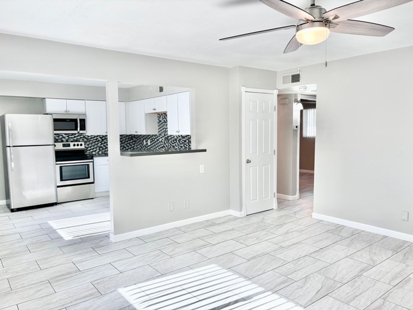 Renovated 2 bed 2 bath unit includes: