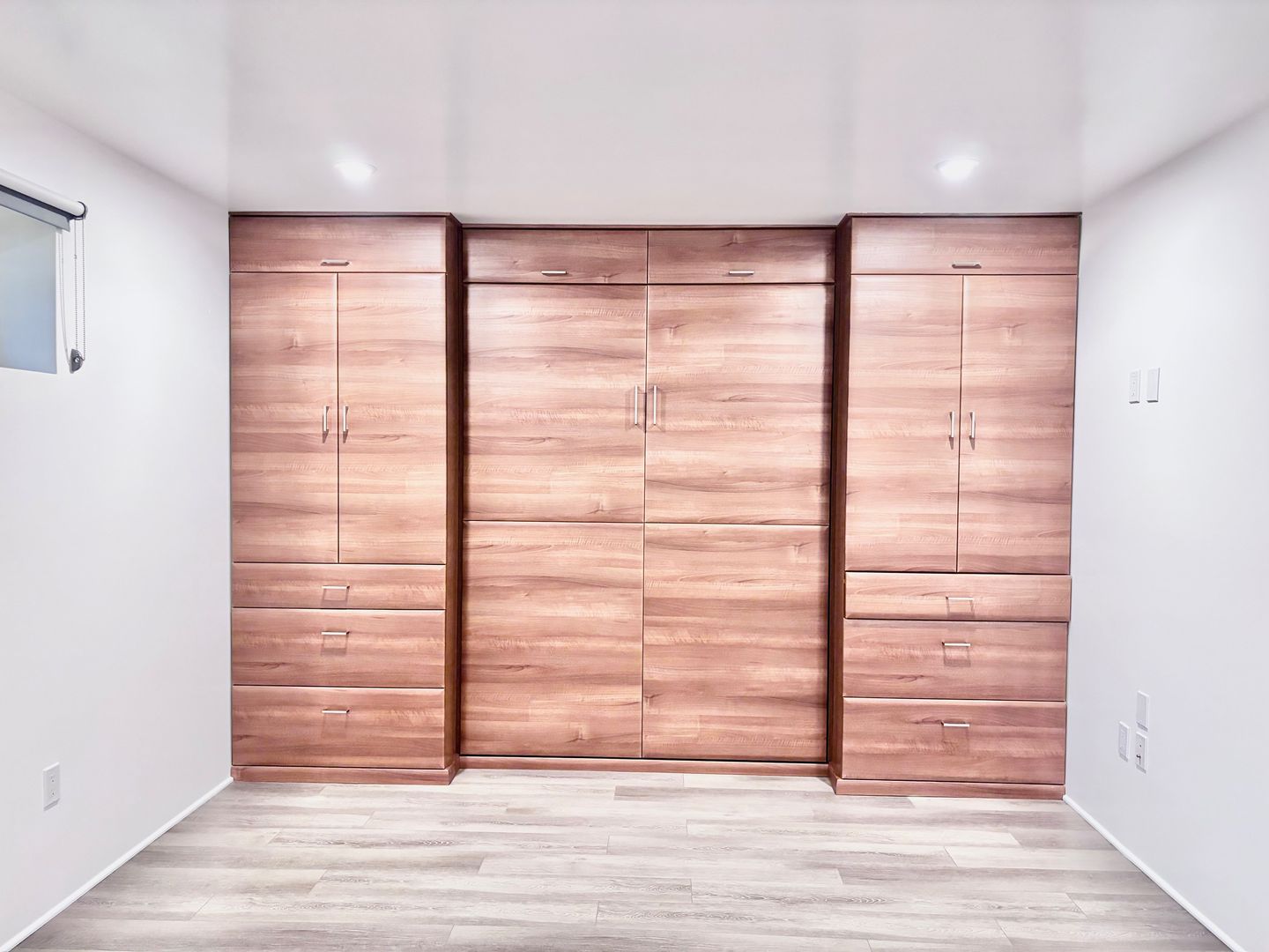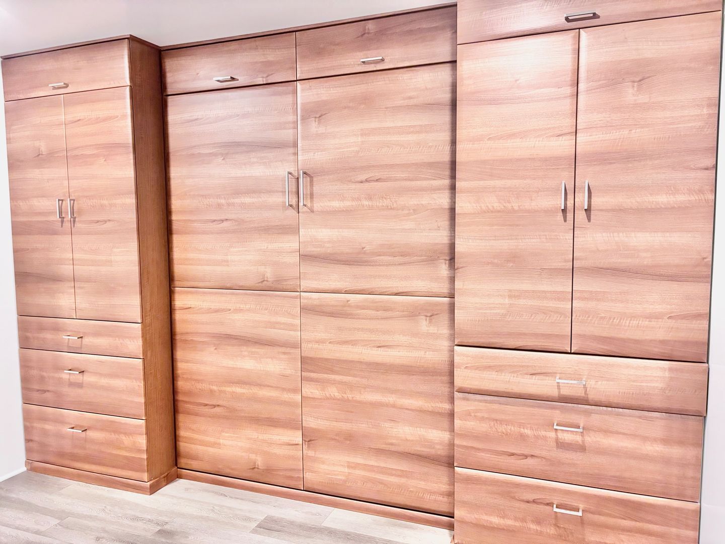 -Murphy bed/hideaway bed (fits a full or queen mattress – just bring your own!)
