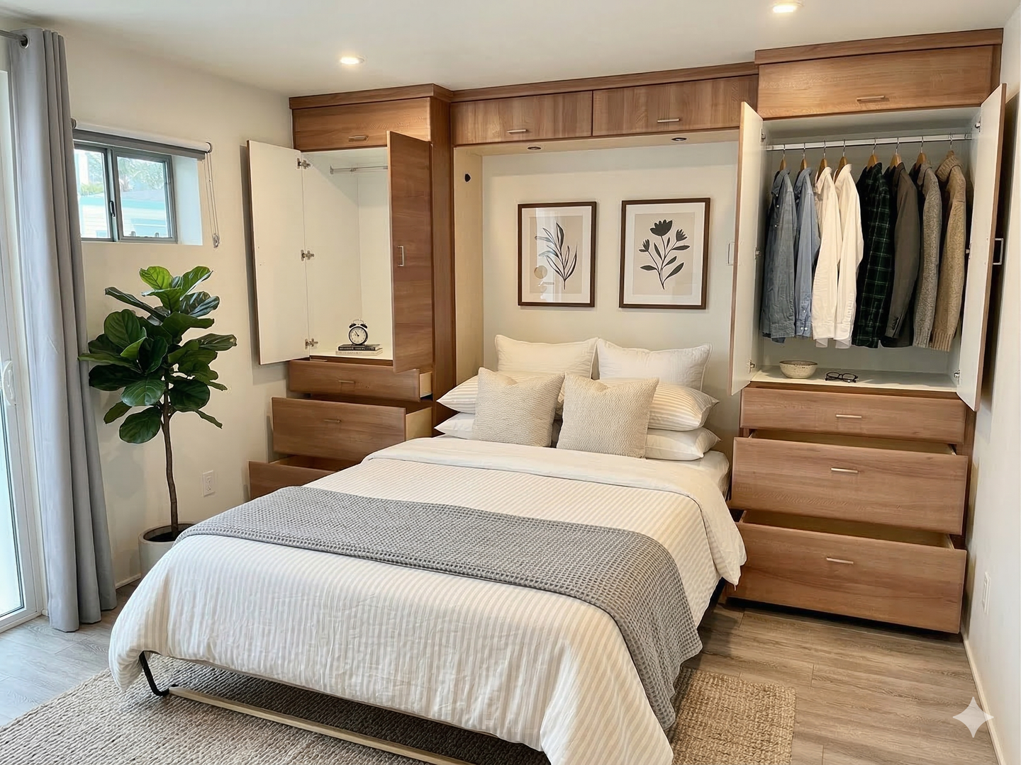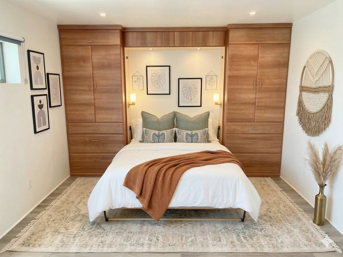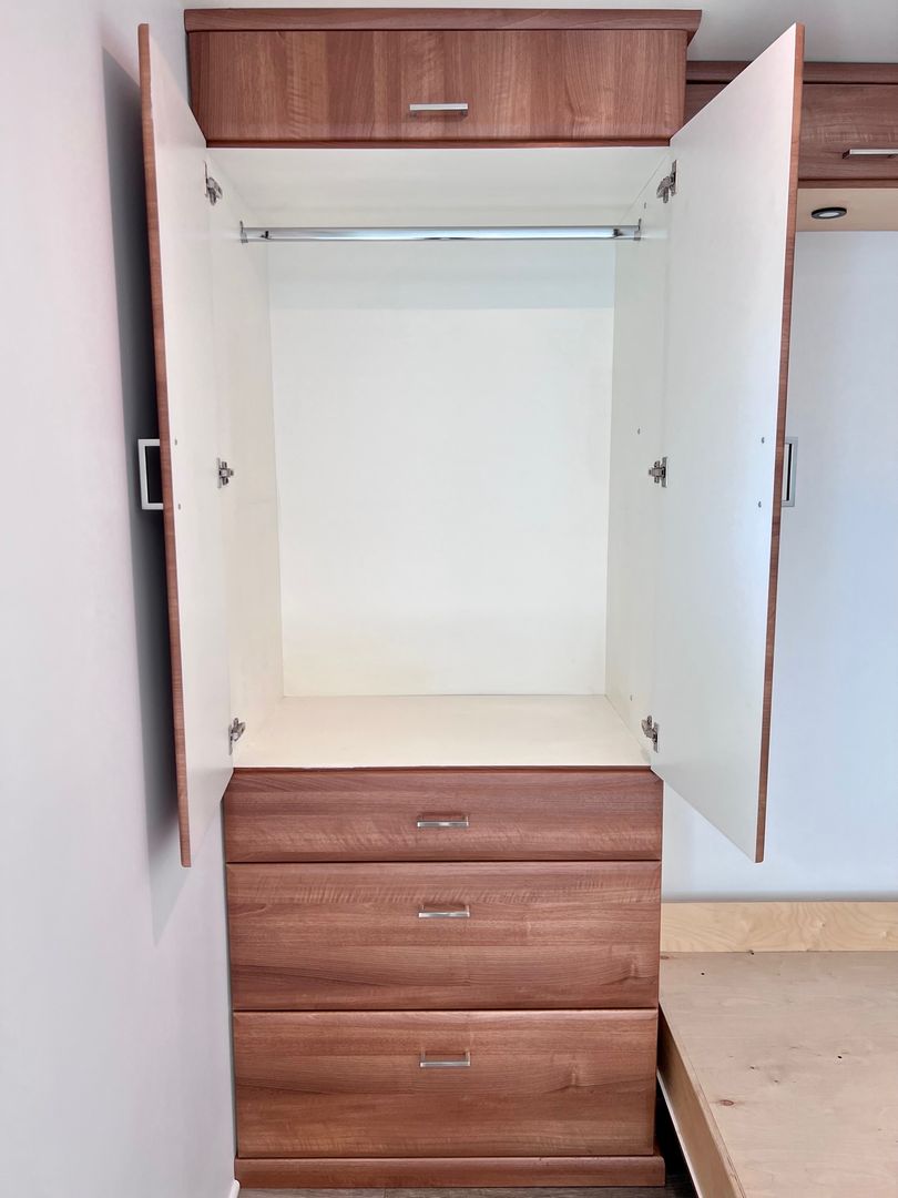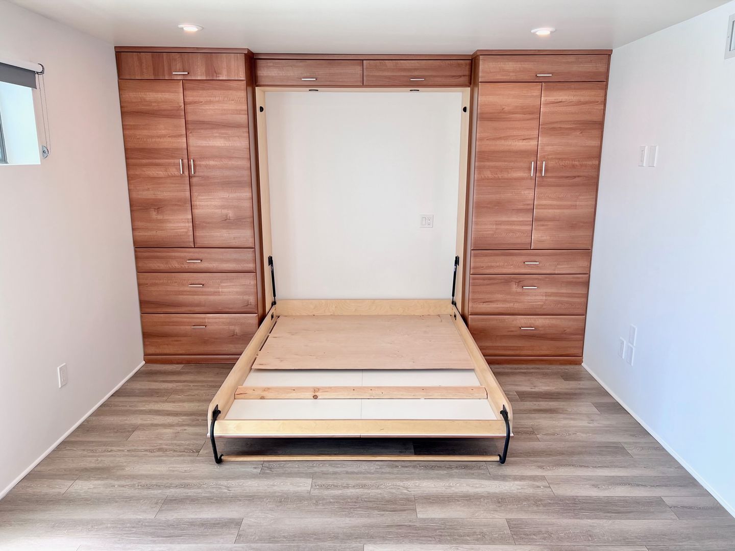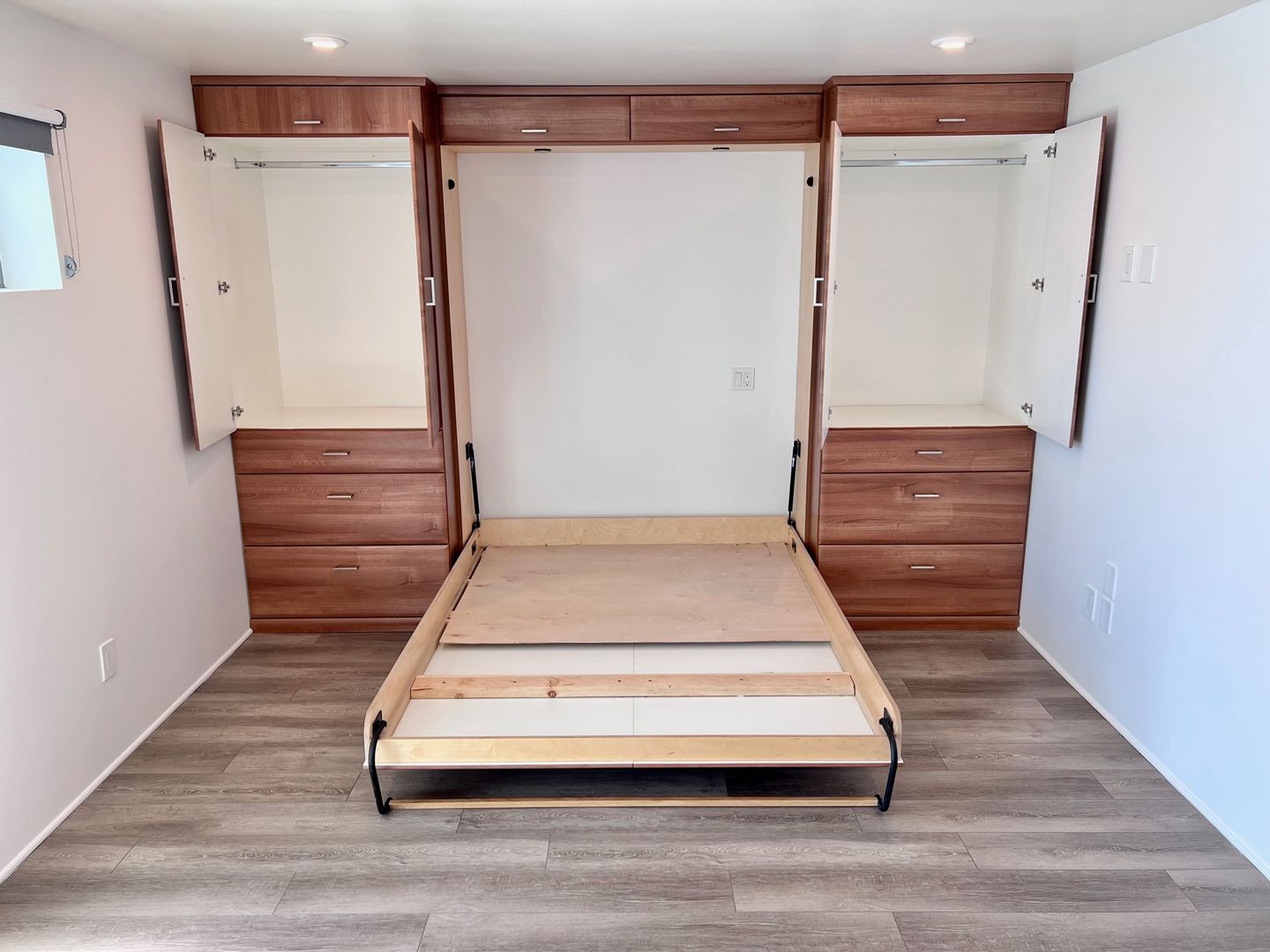 -Murphy bed/hideaway bed (fits a full or queen mattress – just bring your own!)