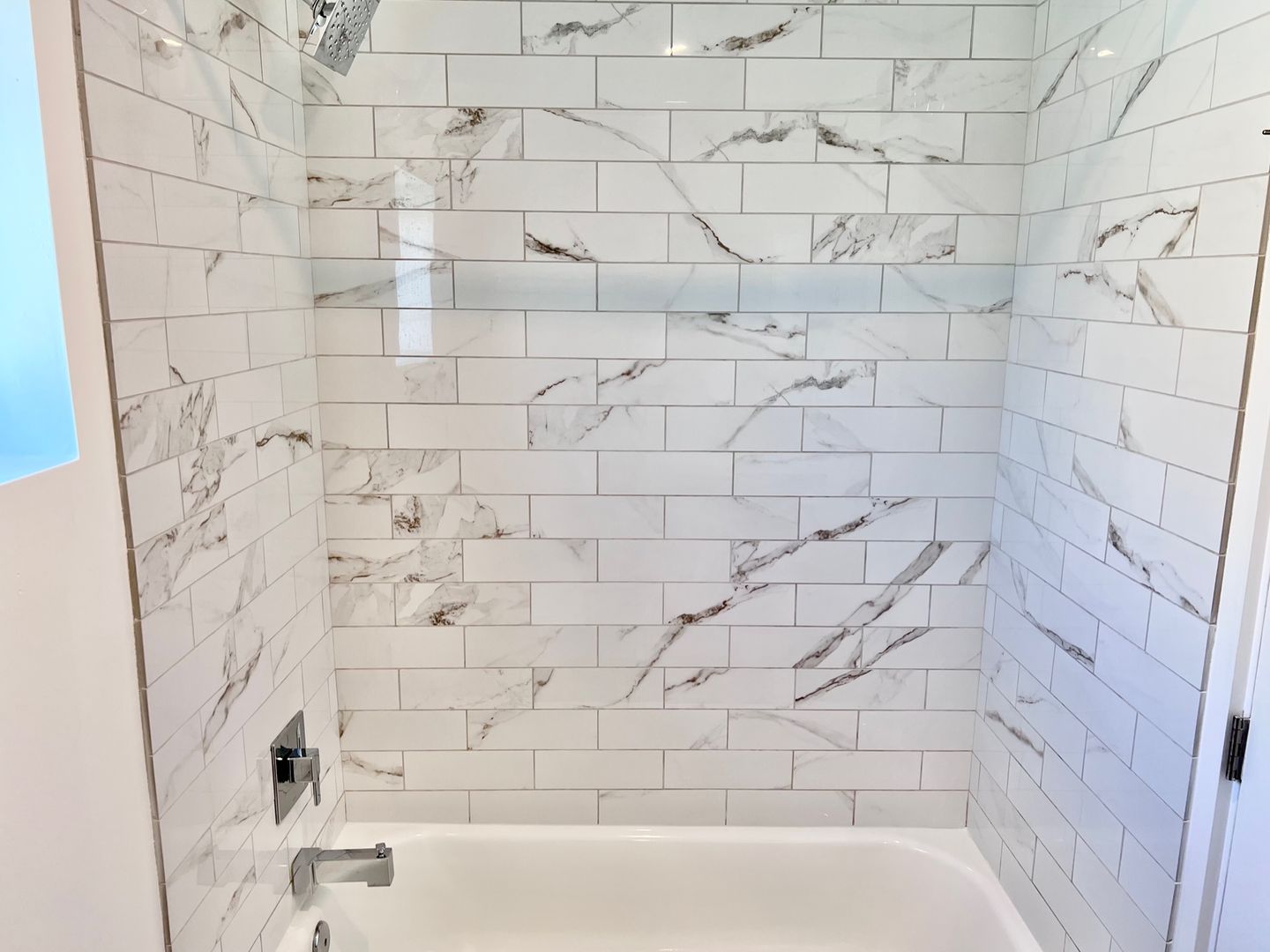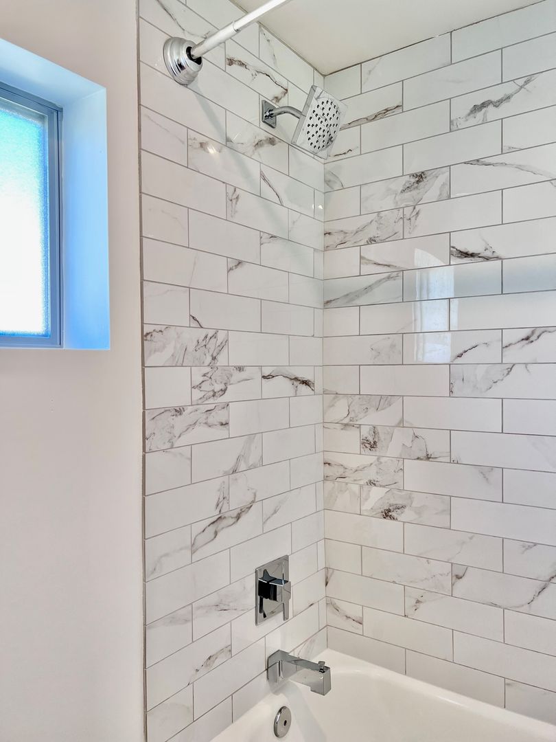 -Subway tile shower backsplash