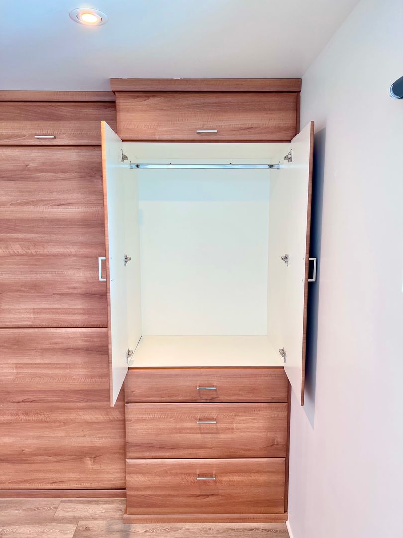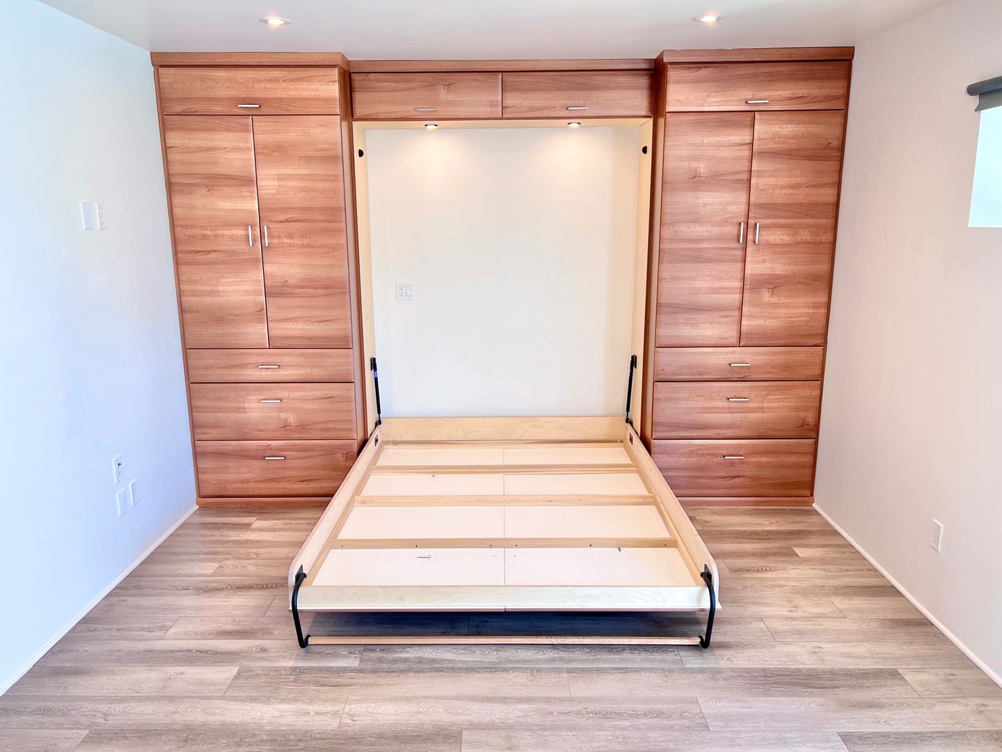 -Murphy bed/hideaway bed (fits a full or queen mattress – just bring your own!)