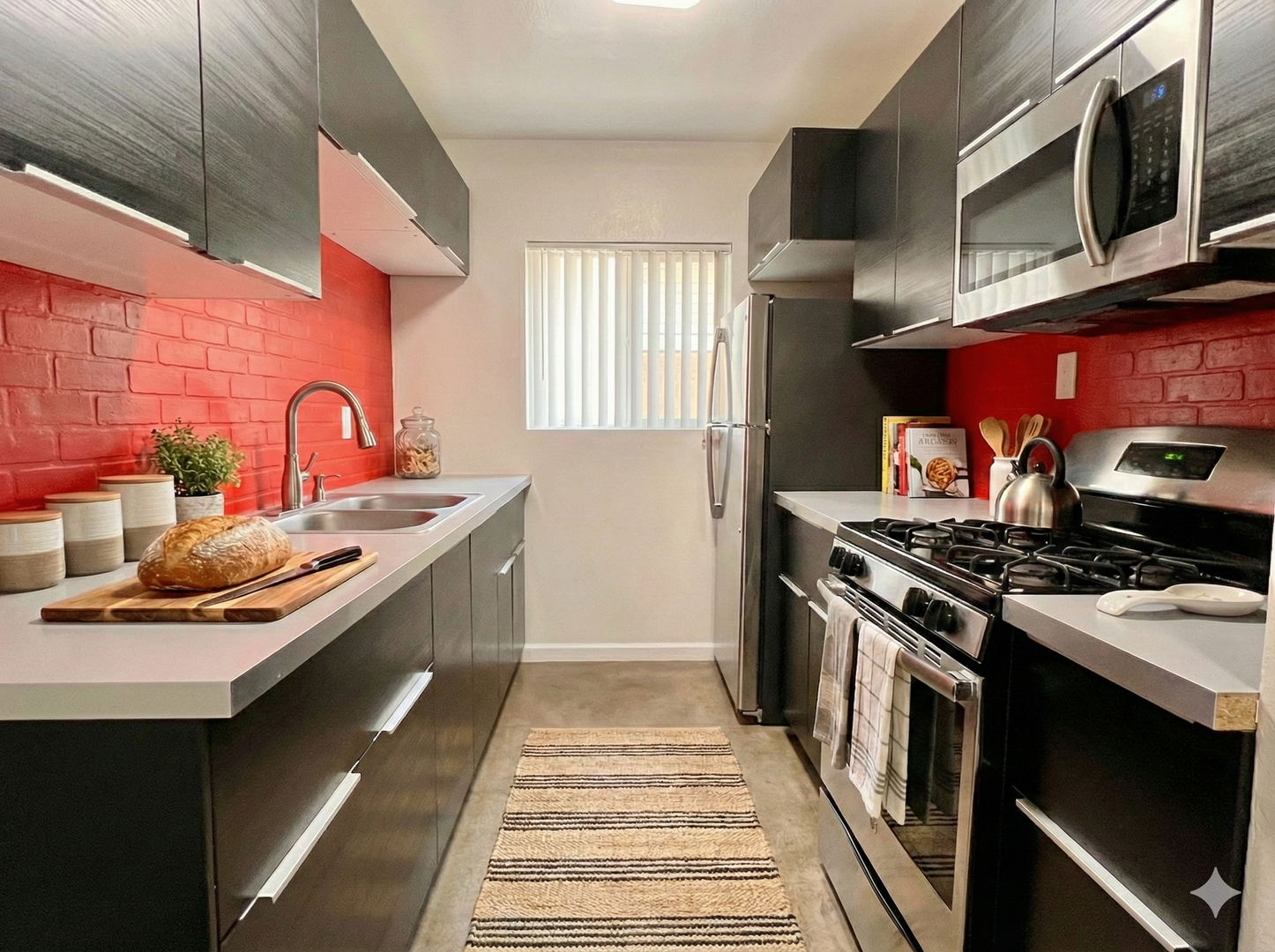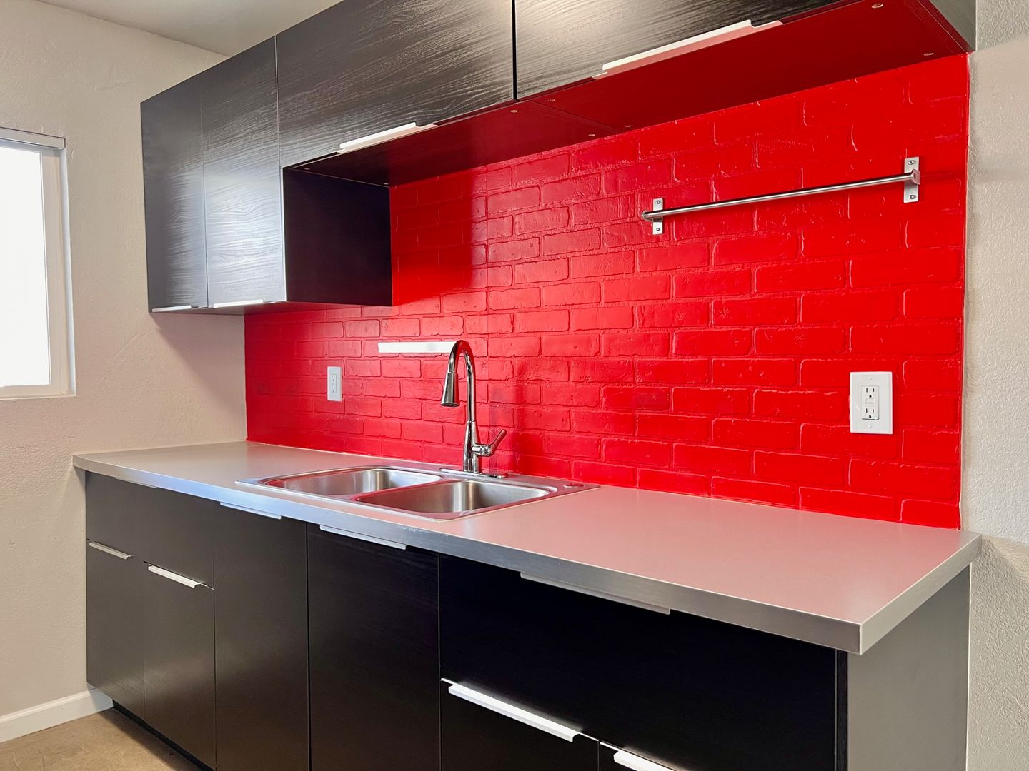-Custom red faux brick backsplashes