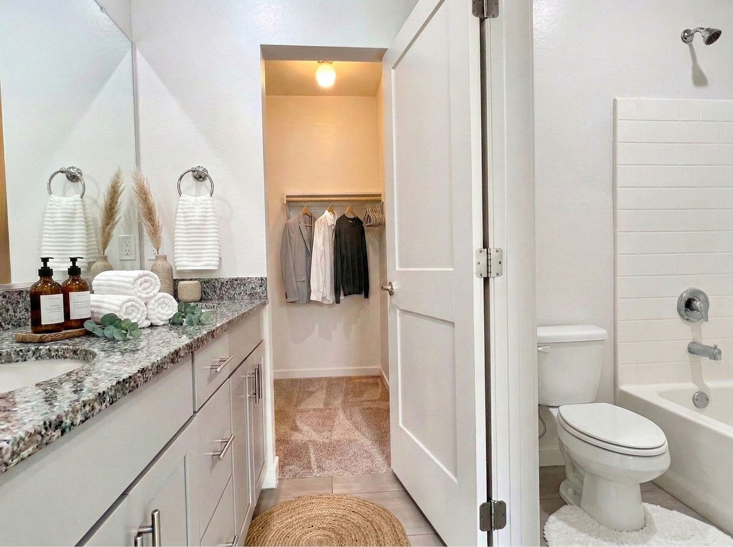 -Full-size bathtubs; granite vanity tops with under-mount sinks