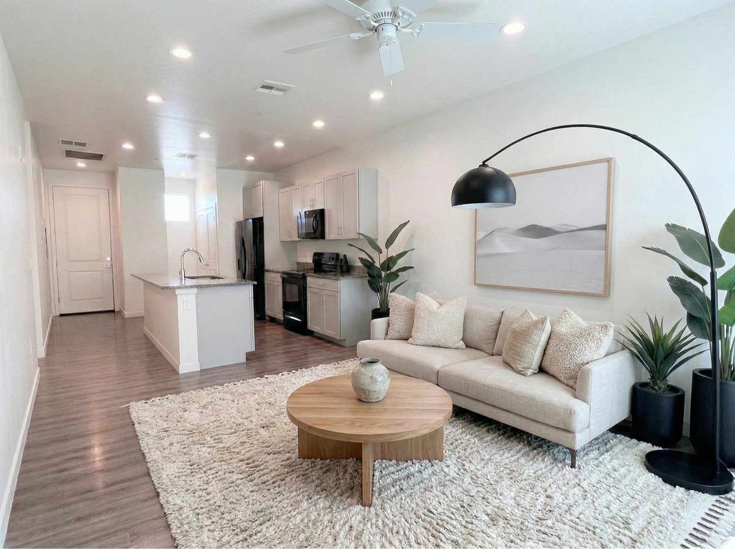 -Plank laminate flooring & neutral color palette