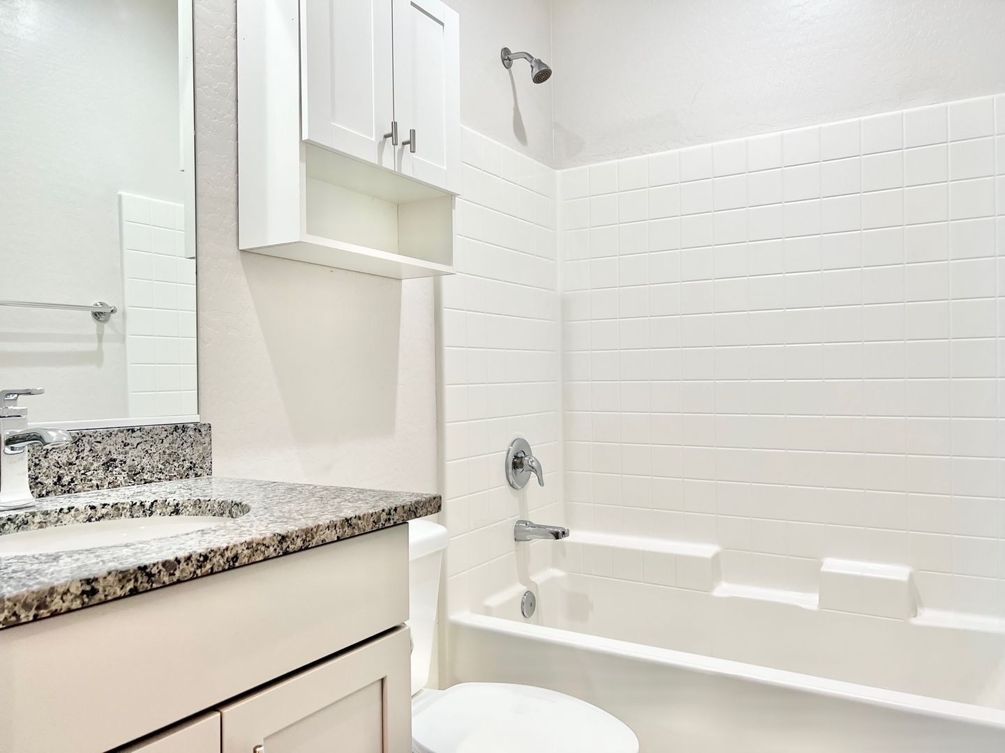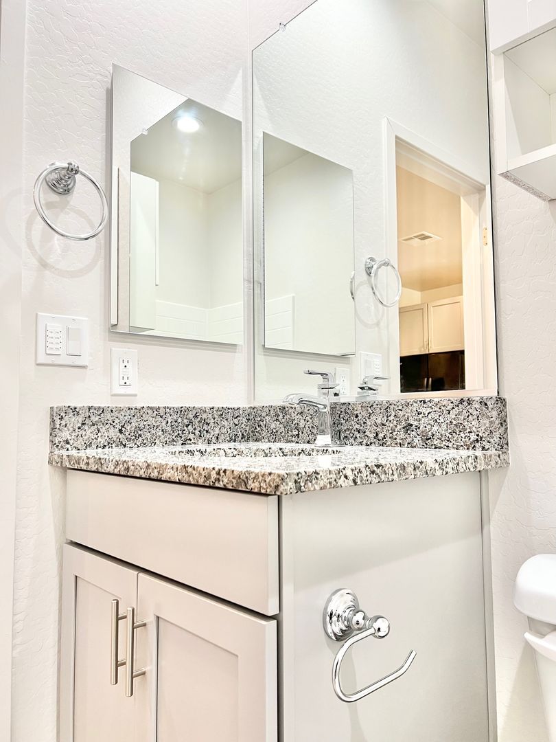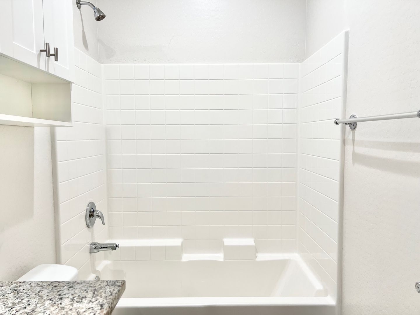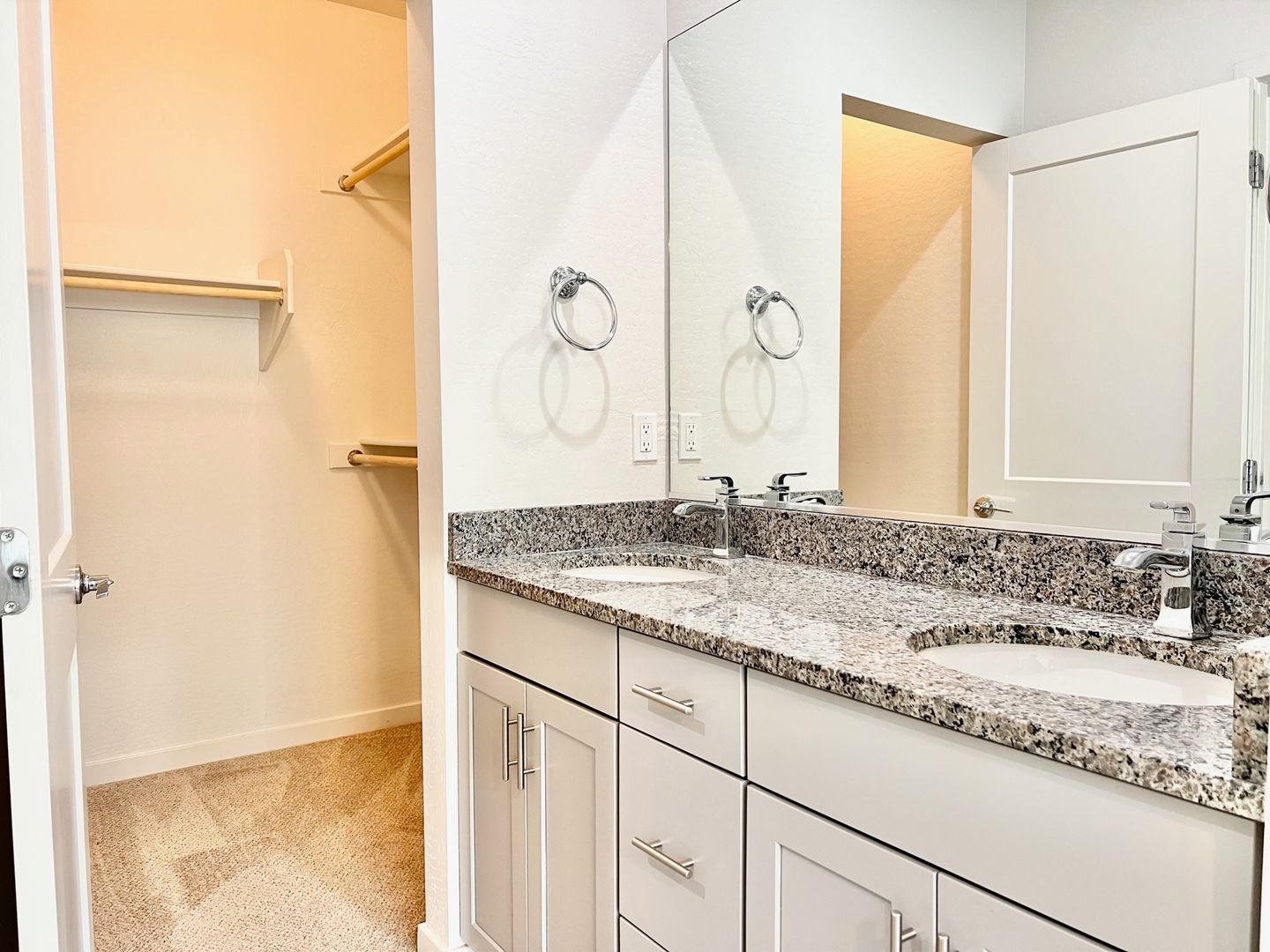 -Full-size bathtubs; granite vanity tops with under-mount sinks