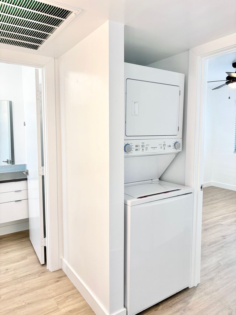 Second‑Floor Unit • In‑Unit Washer & Dryer • Custom Glass Shower