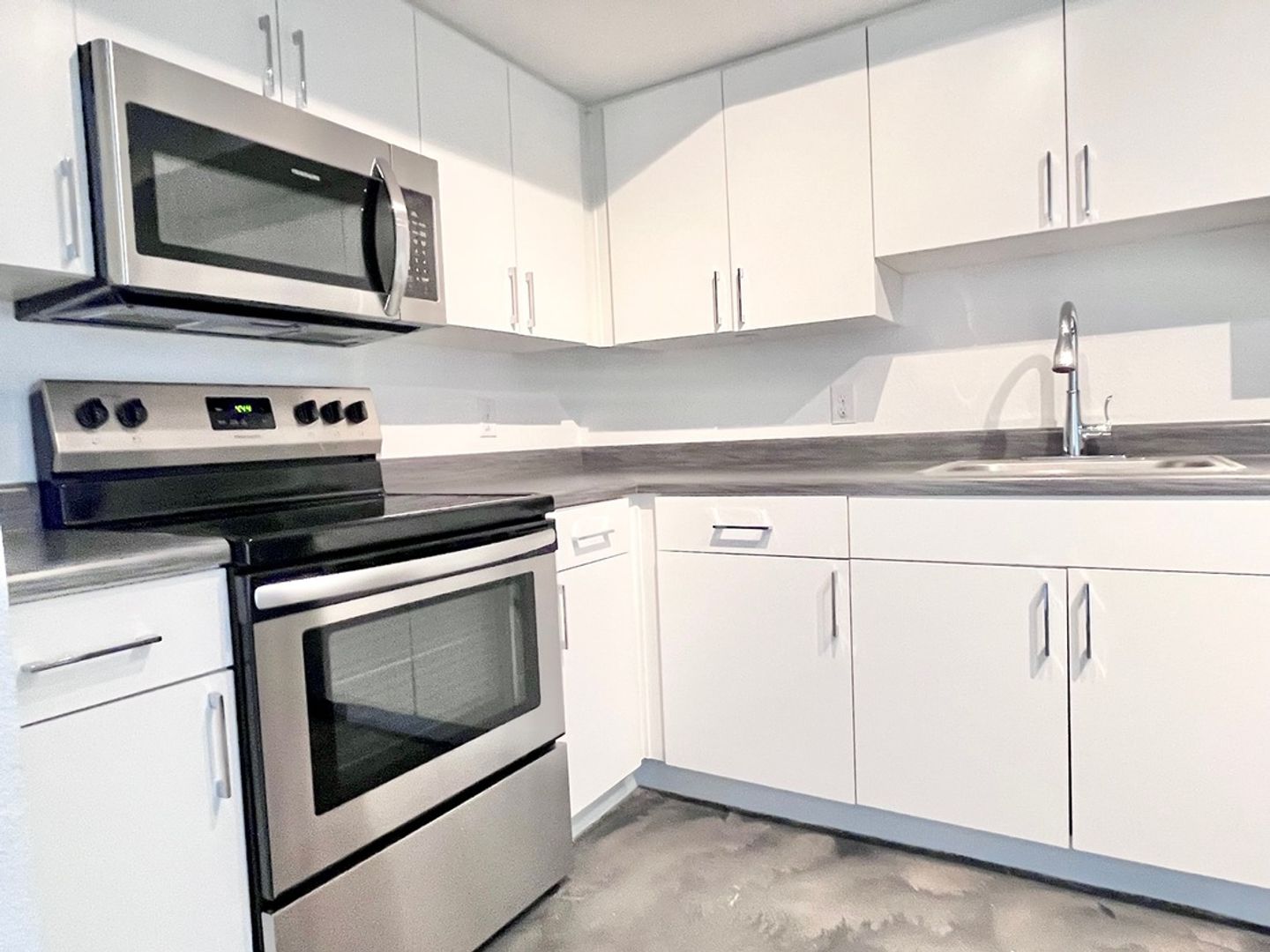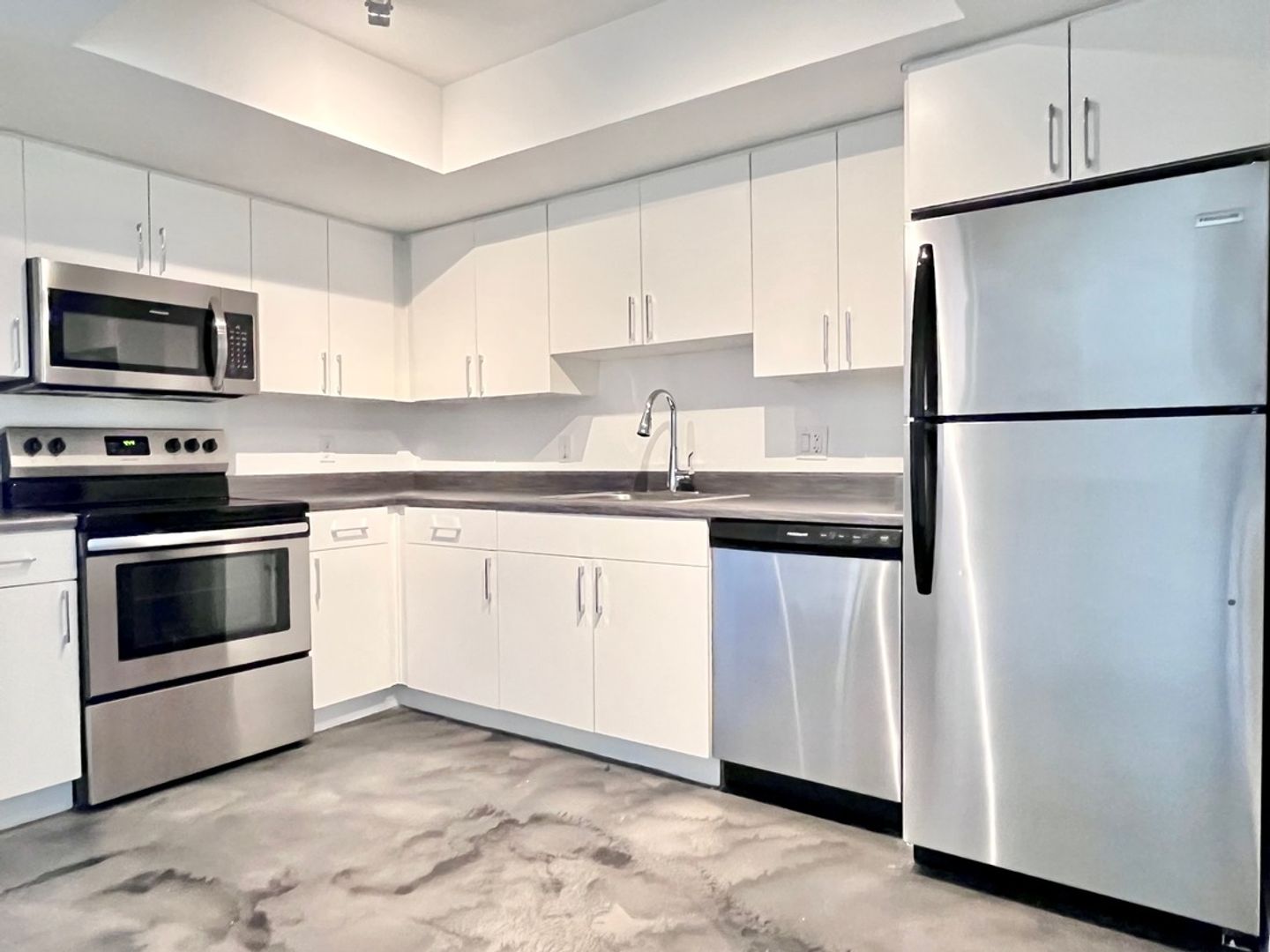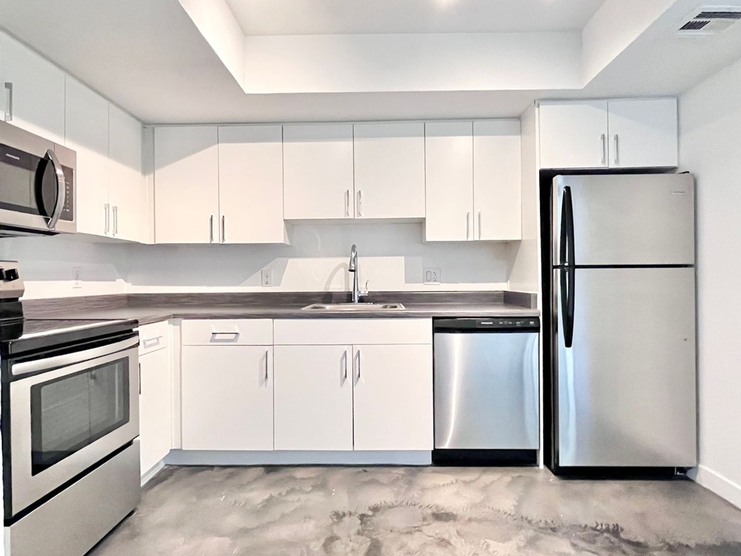 -Sleek stainless steel appliances