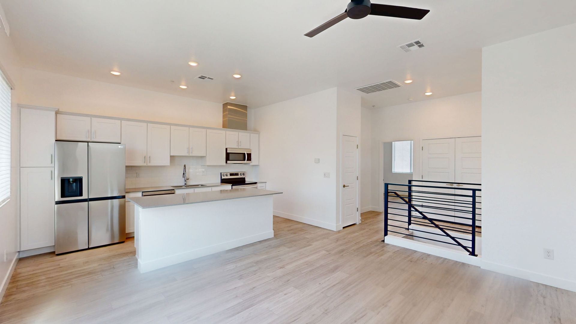 -Spacious kitchen islands with sleek quartz countertops