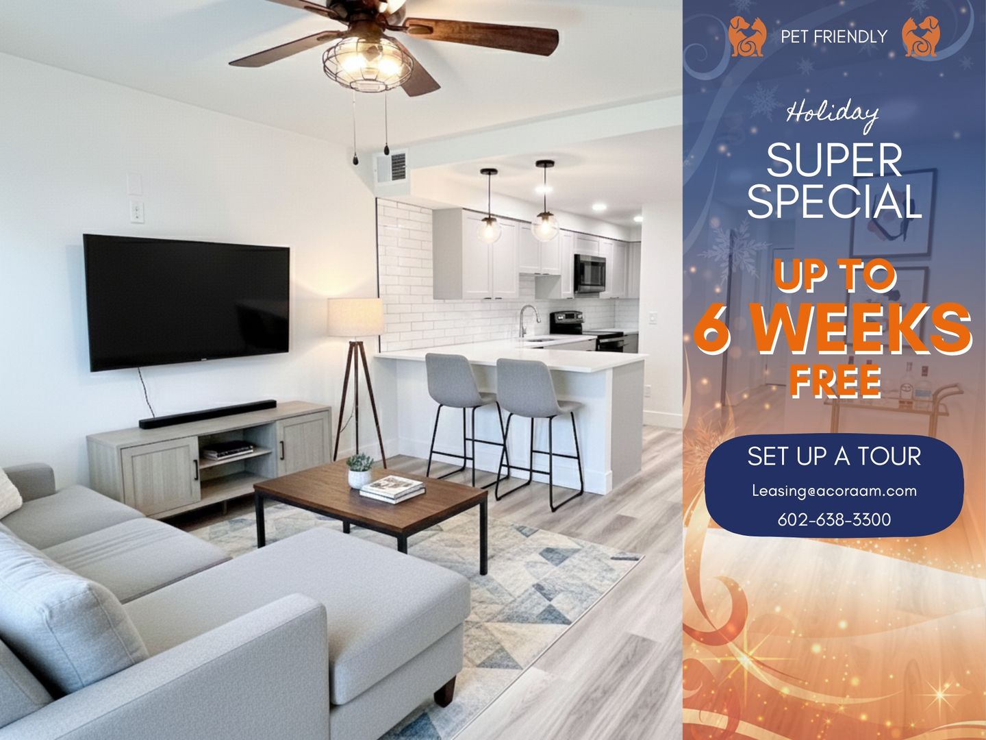 *HOLIDAY MOVE-IN SPECIAL! FIRST MONTH FREE WHEN SIGNING A 13-MONTH LEASE OR 6 WEEKS FREE WITH AN 18-MONTH LEASE!*
