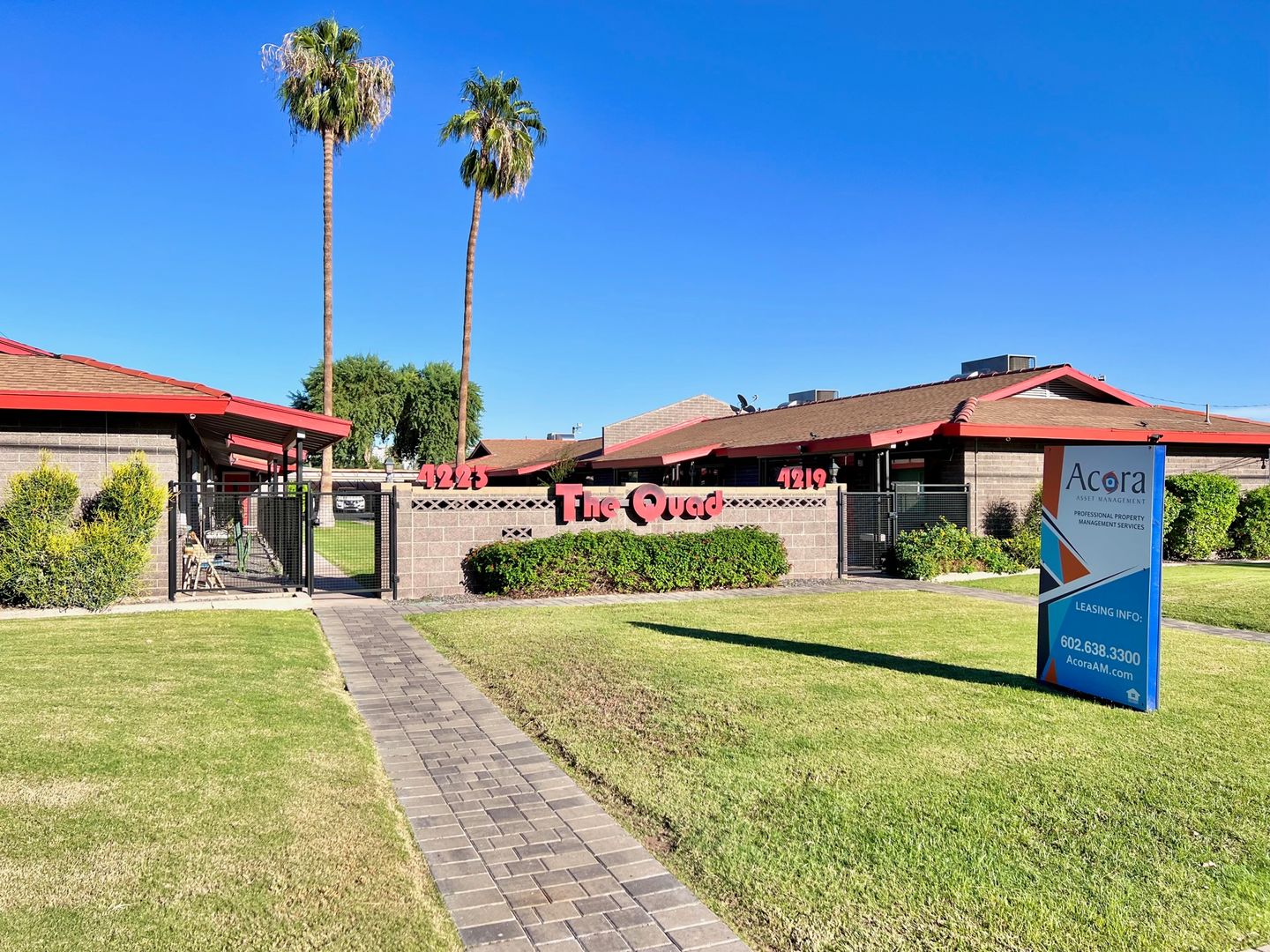 The Quad is a beautifully upgraded, single-level 8-unit garden-style apartment community, located in the perfect Biltmore District location. Just seconds from Biltmore Fashion Park and the SR-51 Piestewa Freeway, this quiet community offers both comfort and convenience.