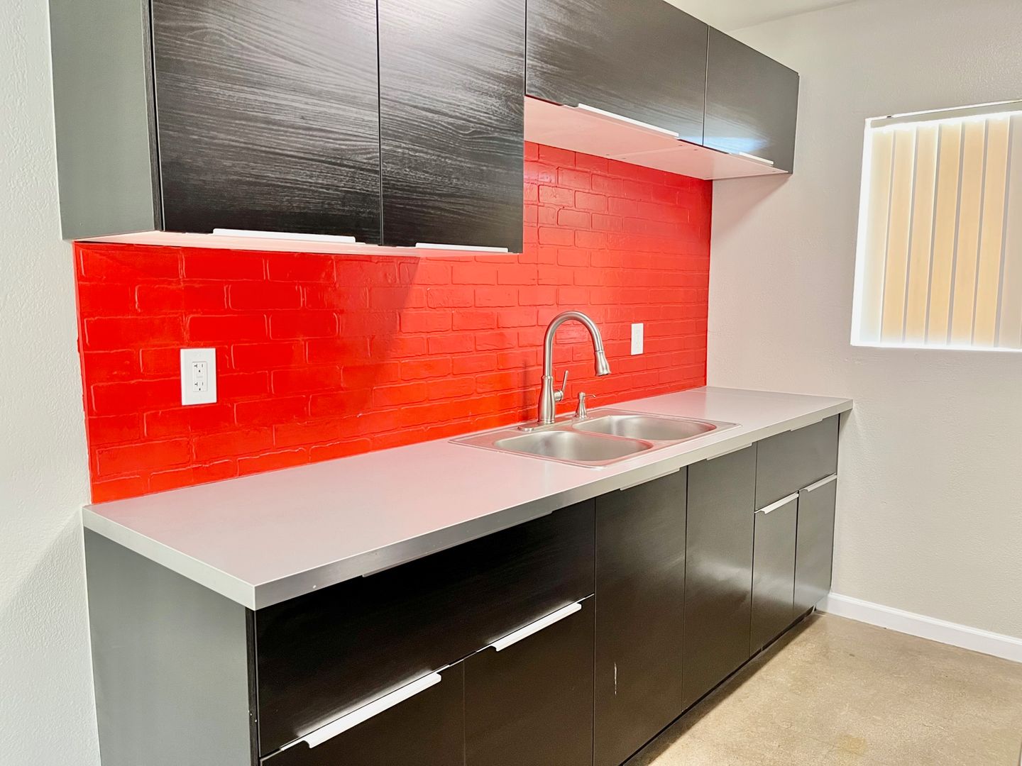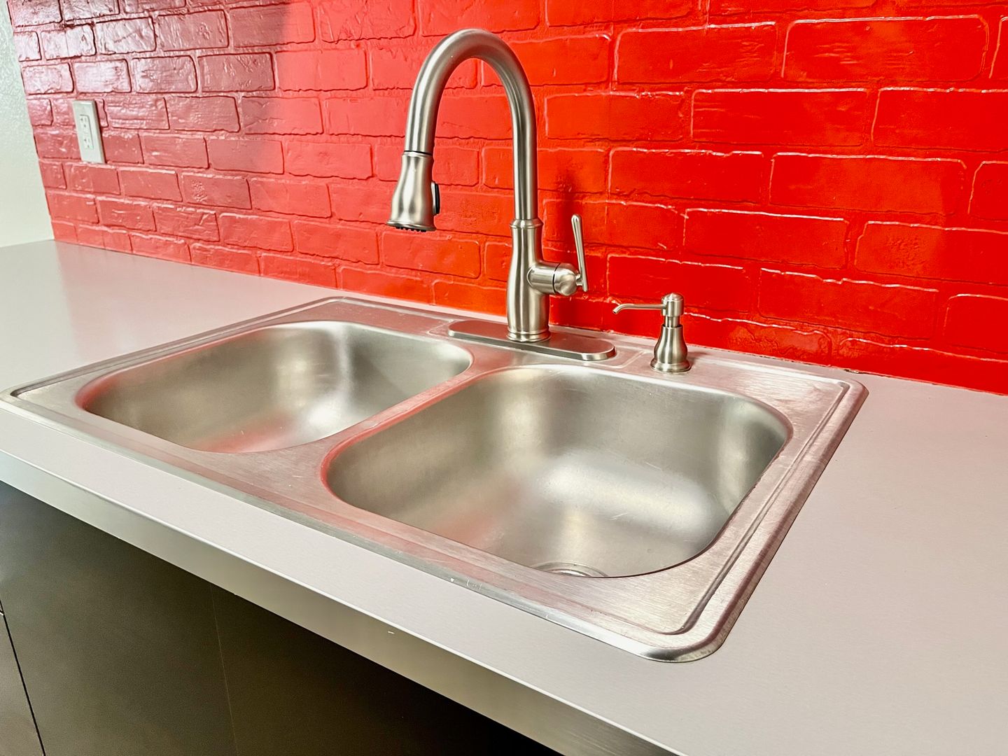 -Custom red faux brick backsplashes