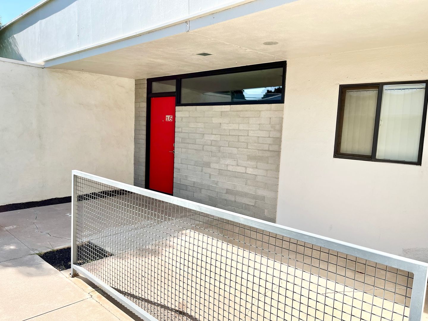 This property boasts a sparkling pool, off-street covered parking, front patios, mature greenery in the courtyard, and excellent mid-century modern aesthetics.