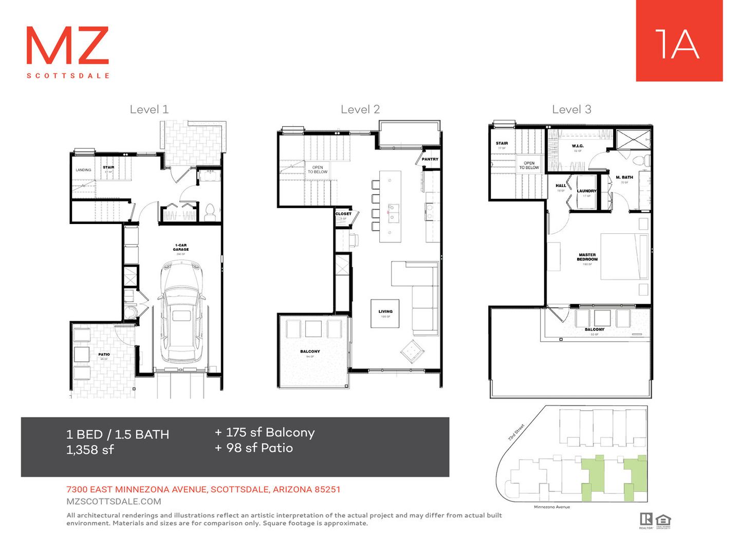 MZ Scottsdale – 1 Bed 1.5 Bath Townhome with In‑Unit Washer & Dryer, 1‑Car Garage