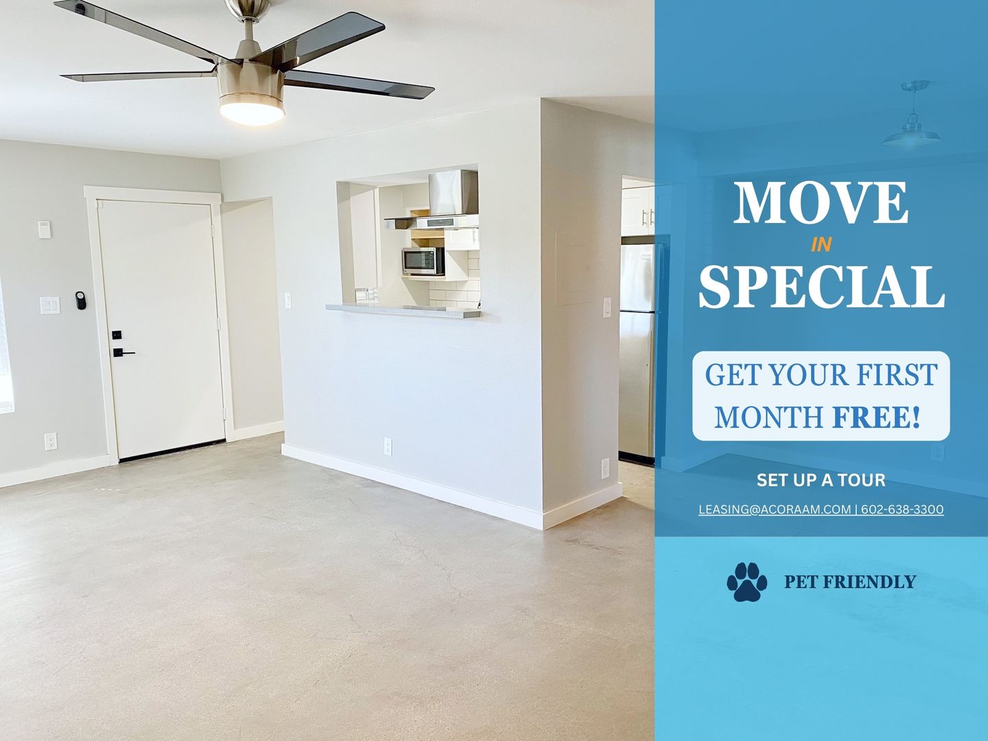 MOVE IN SPECIAL! 1ST MONTH FREE WHEN SIGNING A 13 MONTH LEASE OR AN 18 MONTH LEASE!